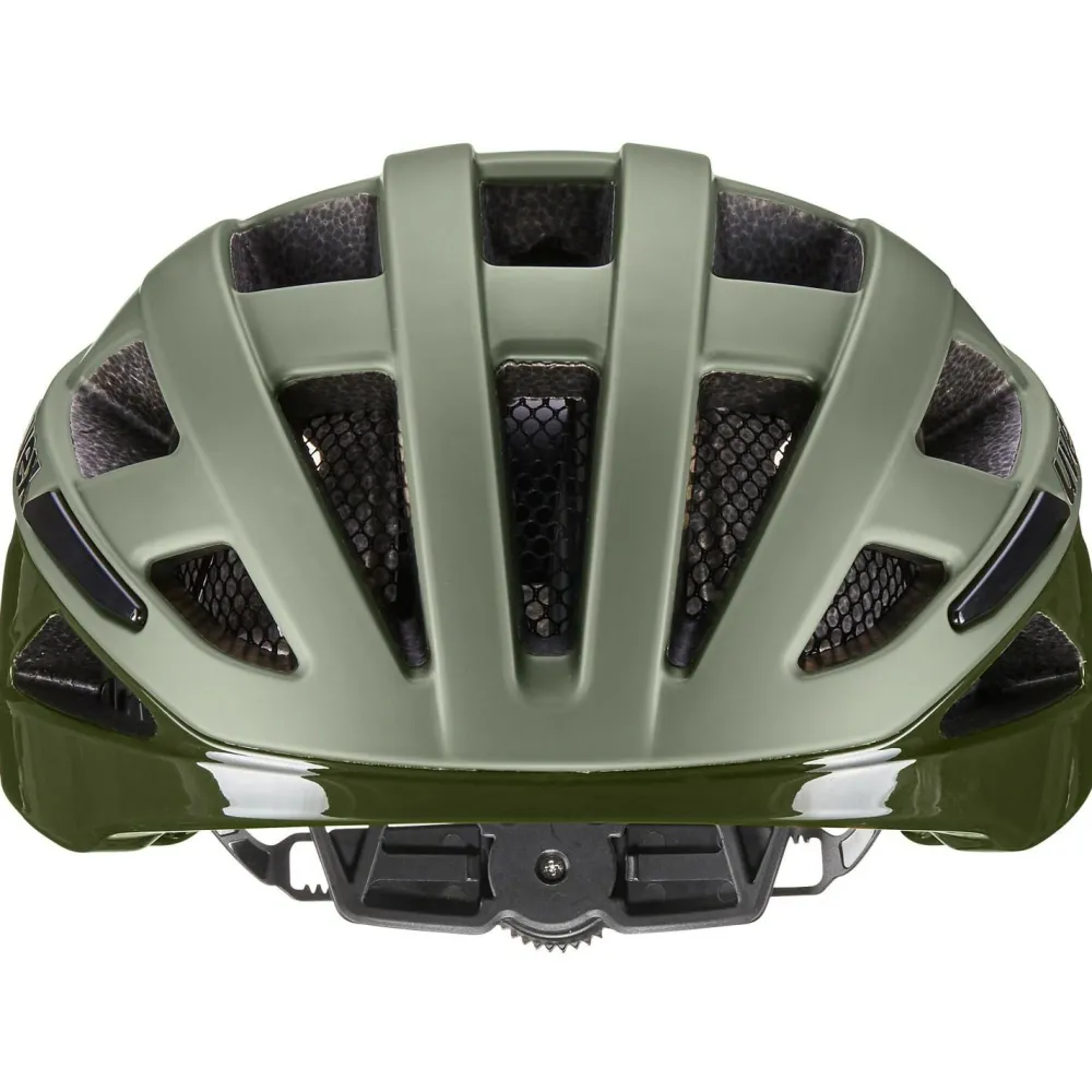 Dank uvex 3D-IAS-System lässt sich der Helm individuell in Höhe und Weite anpassen. Die flachen Gurtbänder mit Y-Verteiler sorgen für einen stabilen, komfortablen Sitz und lassen sich einfach anpassen. Das Belüftungssystem mit vielen Öffnungen und integriertem Fliegennetz für ein angenehm kühles Tragegefühl sorgt. Herausnehmbare, waschbare Pads aus recyceltem Material erhöhen den Komfort zusätzlich – auch auf längeren Touren.