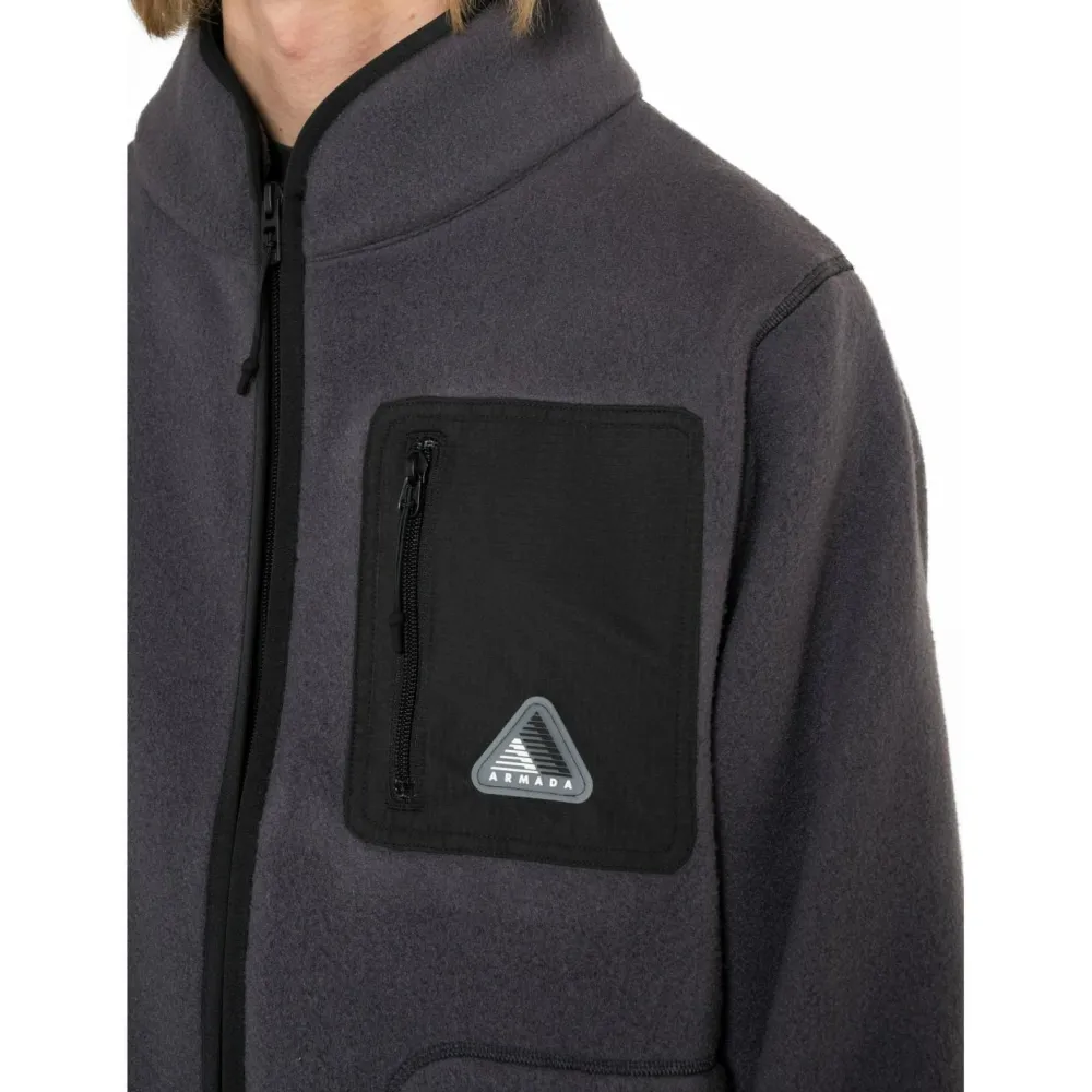Das Ledger Fleece von Armada eignet sich optimal als warme Zwischenschicht für kalte Tage am Berg oder als cooler Begleiter für den Alltag. Der besondere Retro-Look kombiniert mit dem weichen Fleece-Material bietet einen ausgezeichneten Tragekomfort in jeder Situation. Eine Brusttasche mit Reißverschluss und zwei Fronttaschen ebenso mit Reißverschluss lassen kalte Hände und wichtige Habseligkeiten sicher und leicht erreichbar verstauen. Der hohe Kragen bietet eine wohlige Wärme und sorgt für eine Extraportion Style.