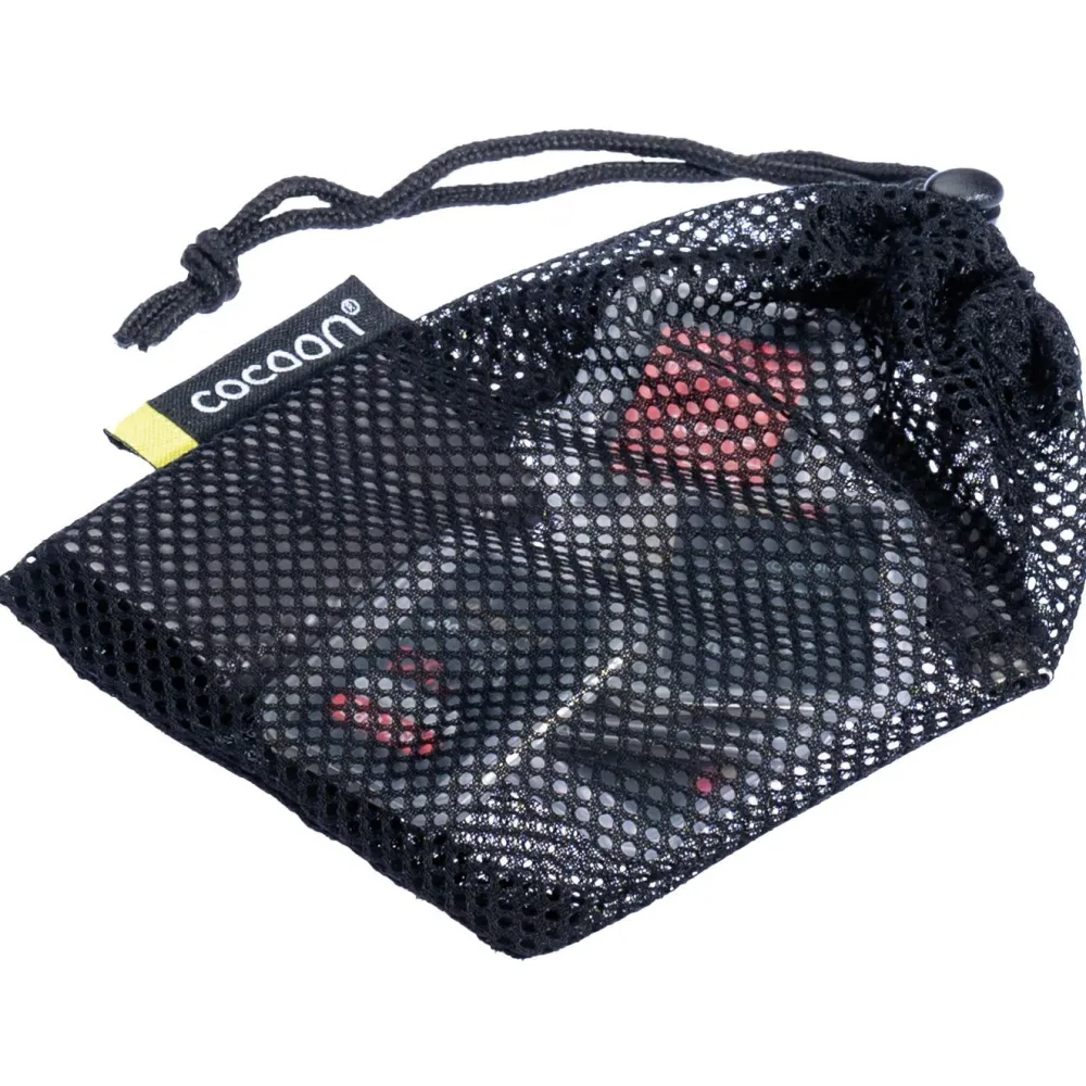 Mit dem Netzbeutel Set von Cocoon erhältst Du vier praktische Netzbeutel in unterschiedlicher Größe. Diese eignen sich besonders gut zum Strukturieren Deines Reisegepäcks. Im größten Beutel finden dabei beispielsweise Hosen oder Pullover Platz, der kleinste Beutel eignet sich eher für Krimskrams wie Heftpflaster oder Haargummis. Alle Packsäcke lassen sich mittels Kordelzug schnell und einfach verschließen.