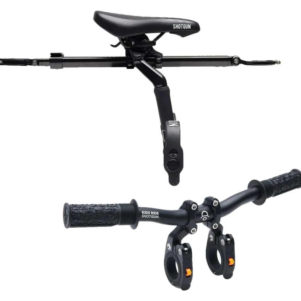 Bringt alles mit, was kleine Mountainbiker für gemeinsame Abenteuer auf dem Trail brauchen: das Pro MTB Front Kindersitz/Lenker Combo Set von Kids Ride Shotgun! Das zweiteilige Set aus Front-Kindersitz und Lenker ist für Kinder im Alter von 18 Monaten bis 5 Jahren konzipiert und lässt sich im Handumdrehen an allen gängigen Mountainbikes und E-Bikes montieren. Da der Sitz am Steuersatz und der Sattelstütze befestigt wird, besteht außerdem keinerlei Kontakt mit dem Rahmen.