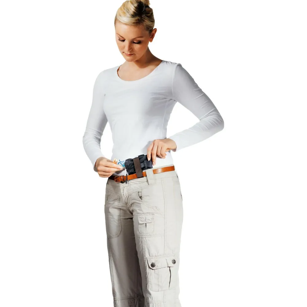 Der Security Flip In von Deuter ist ein praktischer und verlässlicher Wertsachenbeutel für die Reise und die Stadt. Er kann am Gürtel befestigt und auf die Hoseninnenseite geklappt werden, um als Geheimtasche zu dienen. Je nach Gürtel gibt es eine schwarze oder eine braune Befestigungsschlaufe. Zu den weiteren Details gehören zwei Einsteckfächer und der angenehm weiche Bezug auf der Körperseite.