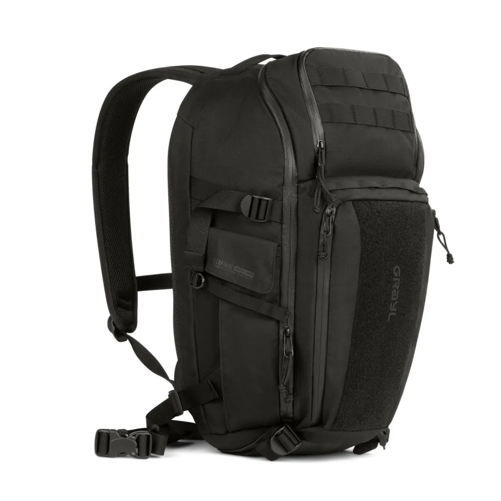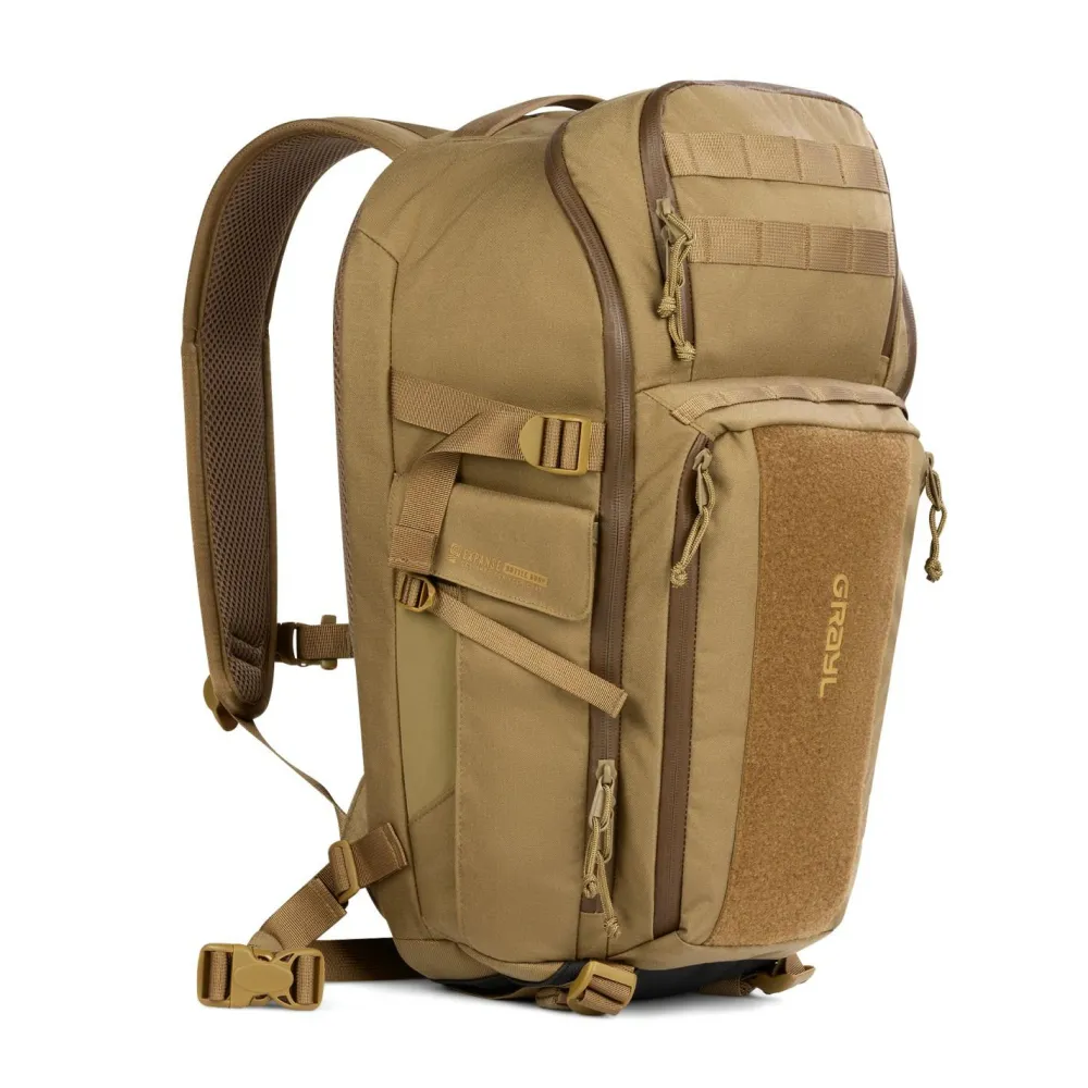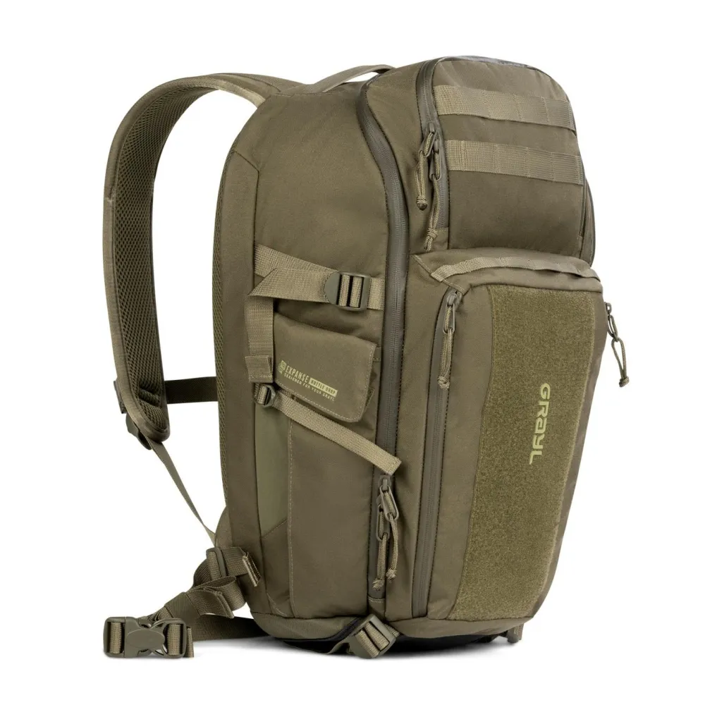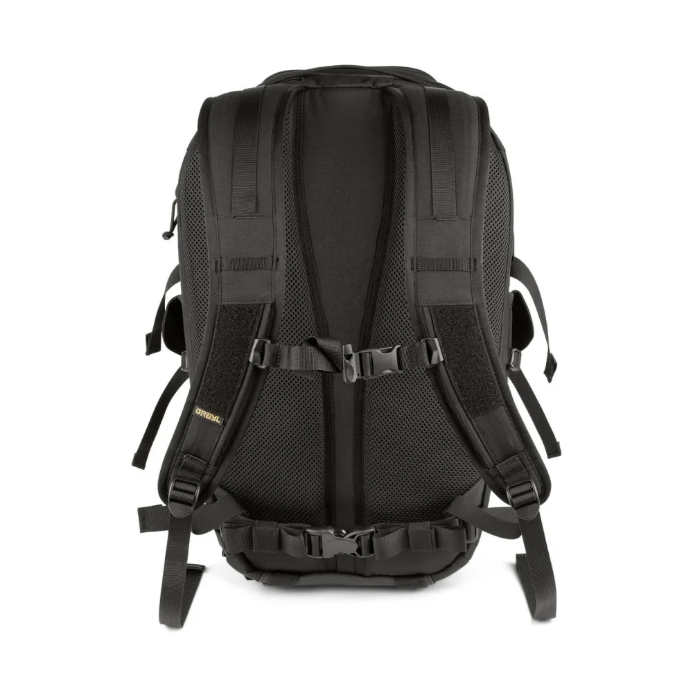 Dank MOLLE-System und G-Mod Pouch-Kompatibilität kannst Du den Rucksack individuell mit kleinen Taschen für Kopfhörer, Sonnencreme oder Snacks erweitern. Die große Klettfläche auf der Front erlaubt Dir, zusätzliche, kleine Taschen von GRAYL schnell und sicher anzubringen. Innen sorgen Mesh-Zipper-Taschen für Ordnung, während die gepolsterte Rückenpartie mit Air-Mesh, der abnehmbare Hüftgurt und die ergonomisch geformten Schultergurte für angenehmen Tragekomfort sorgen. Die seitlichen Kompressionsriemen helfen Dir, das Gewicht körpernah zu halten und die Last optimal zu verteilen.