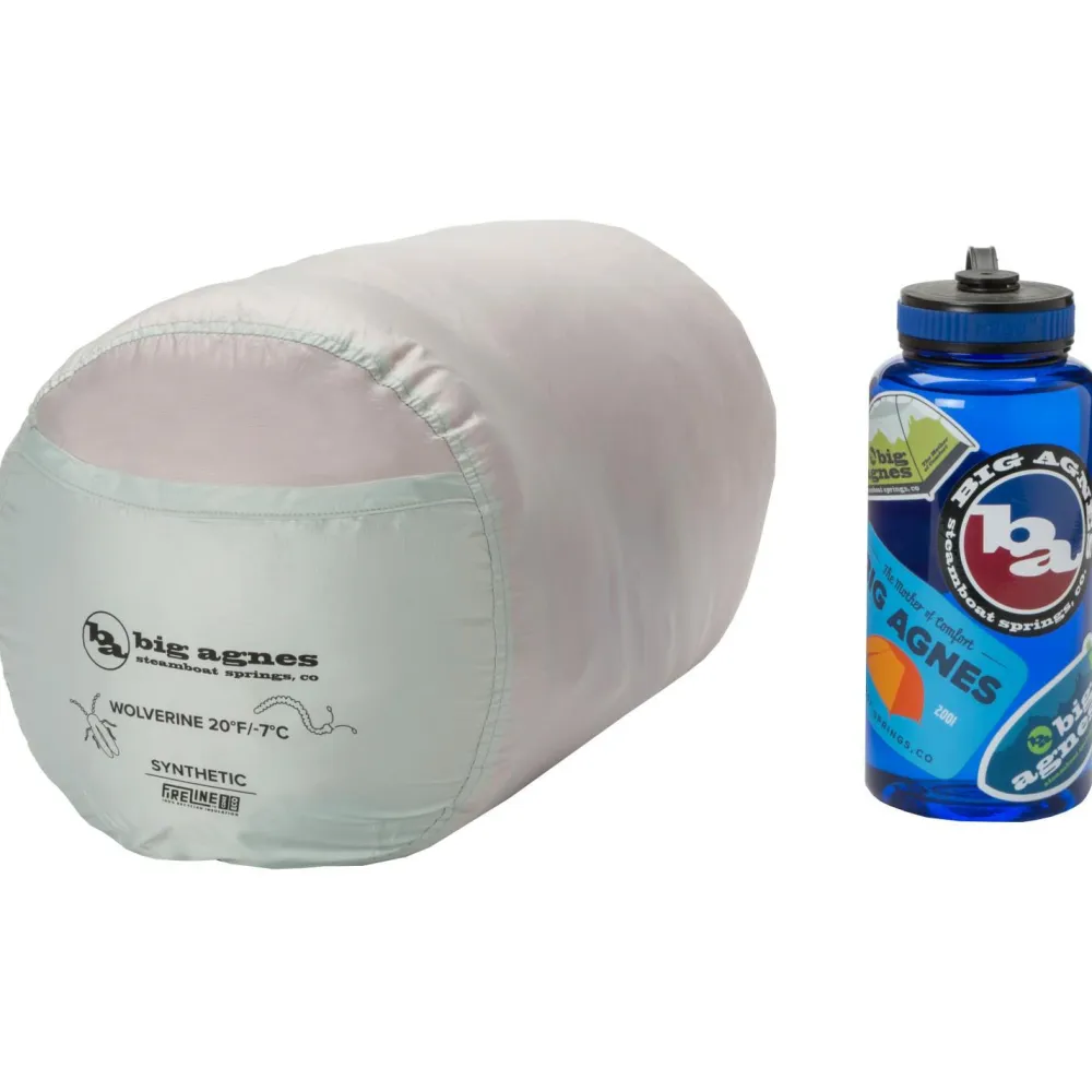Der Wolverine 20 Kunstfaserschlafsack von Big Agnes punktet mit geringem Gewicht und hochwertigen Materialien, die die Kleinen bei Nacht angenehm warm halten. Recycelte Fasern setzen ein klares Zeichen in Sachen Nachhaltigkeit und liegen gleichzeitig angenehm weich auf der Haut. Damit ein unangenehmes Herumrutschen nachts der Vergangenheit angehört, lässt sich der Schlafsack dank einer ausgeklügelten Konstruktion direkt mit einer Isomatte verbinden. Hierfür sind spezielle Halterungen angebracht. Die Isomatte sollte hierfür ca. 51 Zentimeter breit sein.