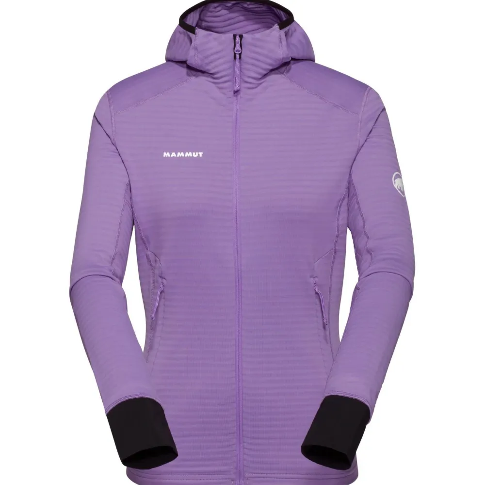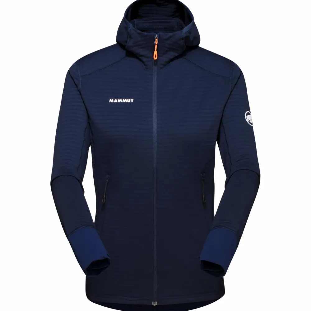 Die hoch platzierten und klettergurtkompatiblen Taschen, diepraktischen Daumenschlaufen sowie die enganliegende, helmkompatible Kapuze, machen aus der Mammut Fleecejack eine hochfunktionale und vielseitig einsetzbare Midlayer.