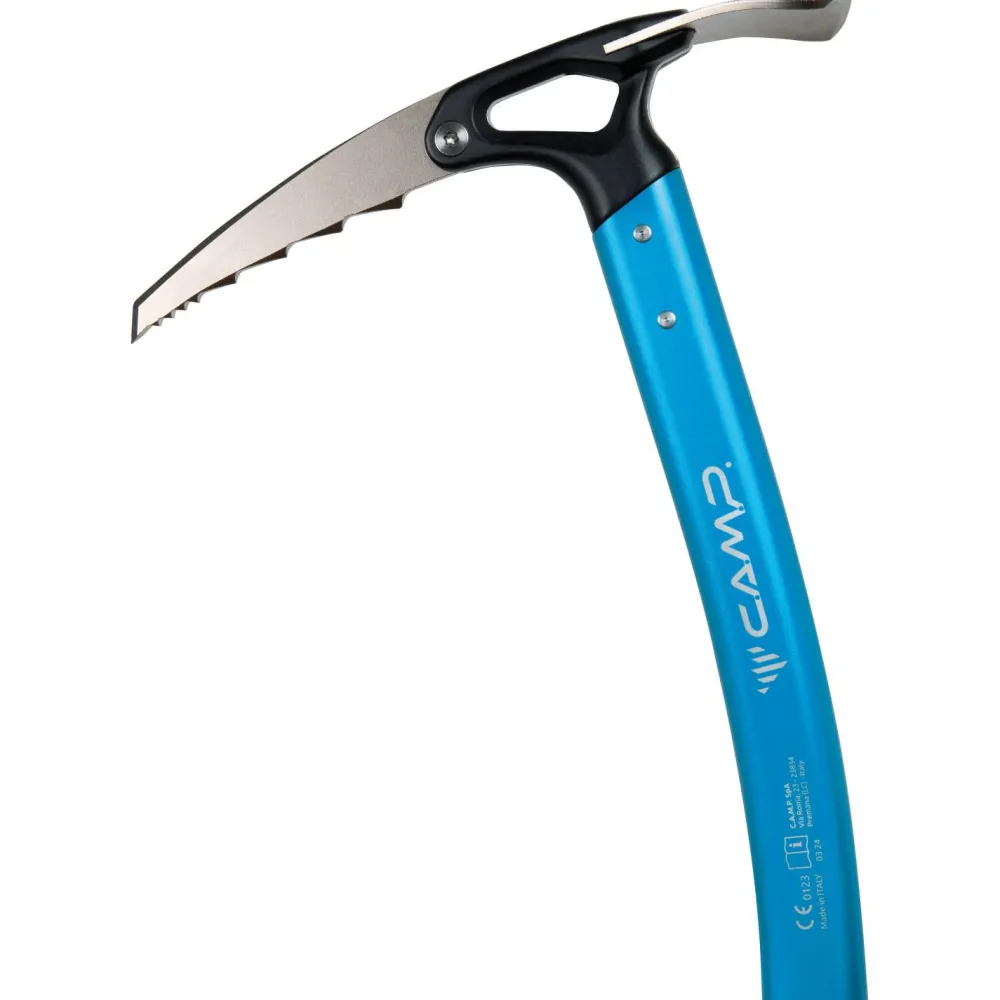 Die auswechselbare Haue trägt zur Langlebigkeit und Vielseitigkeit bei. Die Krümmung des Griffs erleichtert das Herausziehen und erhöht die Leistungsfähigkeit des Eispickels in fest gefrorenem Eis und Schnee. Am Schaft ist zudem ein schnell und werkzeuglos einstellbarer Trigger angebracht. Er sorgt für eine wirksame Traktion mit komfortablem Griff für Zeigefinger und Hand.