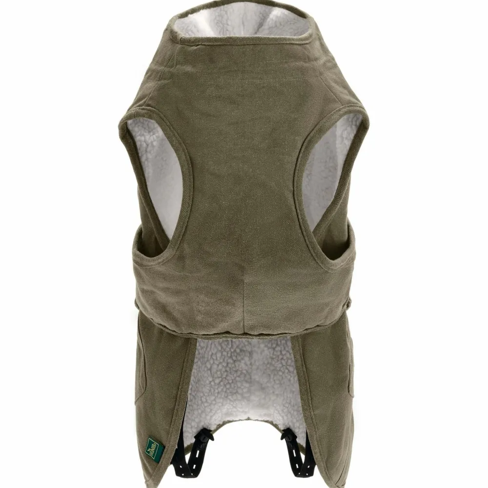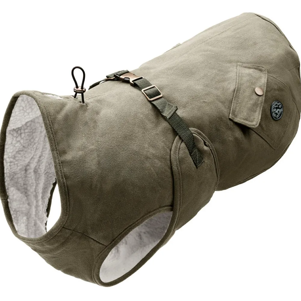 Im coolen Partnerlook mit Deinem geliebten Vierbeiner spazieren – der Dog Coat Uppsala Trend von Hunter überzeugt nicht nur in einem trendigen Parka-Stil, sondern mit einer ergonomischen Passform und tollen Eigenschaften. Der moderne Hundemantel besteht aus einem wind- und wasserabweisenden Baumwoll-Material und ist mit einem wärmenden Teddy-Innenfutter gefüttert. Elastische Fixiergummies für die Hinterbeine und die geschlossene Bauchseite sorgen für einen optimalen Sitz und Komfort. Der Kragen kann mit einem Gummizug reguliert werden. Perfekt für kalte, regnerische Tage im Herbst und Winter.