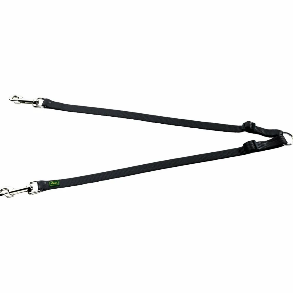 Ob Du nun selbst zwei Hunde hast oder gelegentlich mit Deinem eigenen Hund und einem ‚Gasthund‘ spazieren gehst, wird es schwierig mit zwei Leinen gleichzeitig umzugehen. Und da kommt die Koppel von Hunter ins Spiel. Mit ihr gehört dieses Problem der Vergangenheit an. Weil man im Alltag eben idealerweise eine Hand freihaben sollte, auch wenn man mit zwei Hunden unterwegs ist, gehört die pflegeleichte, strapazierfähige Koppel aus Nylongurt zur Ausstattung einfach dazu. Die zwei Leinen der Koppel werden ganz normal in die Halsbänder der Hunde eingehakt. Dann Kannst Du in den Ring der Koppel eine Leine oder eine Führschlaufe einhaken. So hast Du beide Hunde locker im Griff, und noch dazu eine Hand frei.
