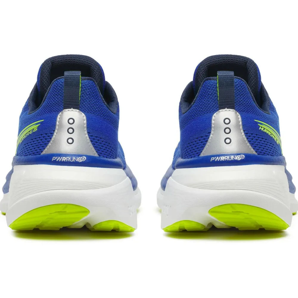 Mit den Saucony Hurricane 25 Runningschuhen erlebst Du auf Asphalt ein Laufgefühl, das Komfort und Dynamik optimal verbindet. Die Kombination aus PWRRUN und PWRRUN PB in der Zwischensohle sorgt für eine besonders ausgewogene Dämpfung und eine beeindruckende Energierückgabe – ideal, wenn Du lange Strecken oder intensive Trainingsläufe bevorzugst. Die Center Path Technologie und der PWRRUN FRAME stabilisieren Deinen Fuß bei jedem Schritt, während die Sprengung von 6 Millimetern und die hohe Stapelhöhe von etwa 38 Millimetern für ein maximal gedämpftes, aber dennoch reaktionsfreudiges Lauferlebnis sorgen.