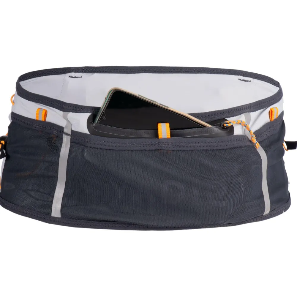 Ob lange Trainingseinheiten oder Wettkämpfe – mit dem Hydration Belt hast Du alles Wichtige griffbereit, ohne auf Bewegungsfreiheit zu verzichten. Dank seines innovativen Justiersystems sitzt er sicher an der Hüfte, während die 5 Taschen Platz für Dein Smartphone, Gels, Schlüssel und eine 500-ml-Flasche bieten.Mit nur 93 g ist der Laufgürtel kaum spürbar und reduziert störendes Wackeln. Die Schaumpolsterung auf der Rückseite sorgt für zusätzlichen Komfort, auch wenn Du Stöcke mitführst.