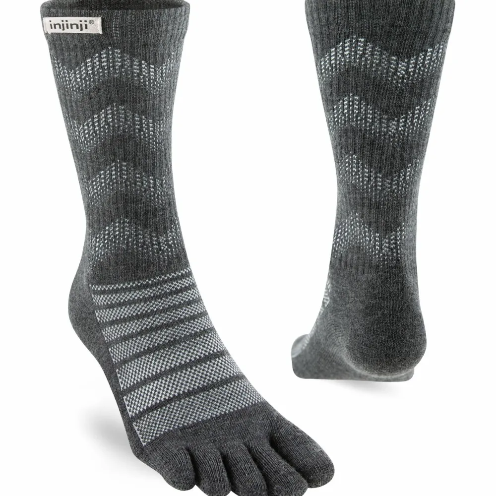 Bequem und atmungsaktiv unterwegs – mit den Outdoor Midweight Crew Wool Wandersocken von Injinji! Die Zehensocken verhindern den direkten Kontakt zwischen Deinen Zehen und schützen so vor Blasenbildung. Mit der Kombination aus Merinowolle und Kunstfasern sind sie geruchshemmend und schnelltrocknend und fühlen sich besonders gut auf der Haut an. Gleichzeitig sorgen Mesh-Einsätze an der Oberseite der langen Socken für erhöhte Atmungsaktivität.