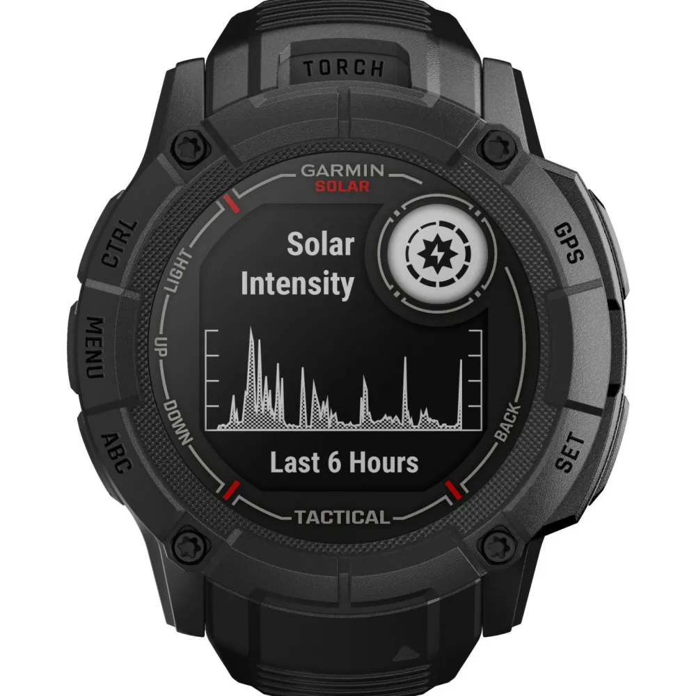 Die Multifunktionsuhr Instinct 2X Solar Tactical Edition von Garmin begleitet Dich bei den unterschiedlichsten Sportarten und Outdoorabenteuern! Ihr toughes Design sieht nicht nur sportlich aus, sondern passt zu allen Deiner Styles! Sie begleitet Dich auch im Alltag und in Deiner Freizeit und lässt Dich dank integrierter Solartechnologie nicht im Stich. Du hast keinen Stress mehr mit dem Akku, denn im Smartwatchmodus musst Du den Akku eigentlich nicht mehr laden (3 Stunden tägliche Outdoor-Nutzung bei 50.000 LUX Lichtverhältnissen sind dafür erforderlich).