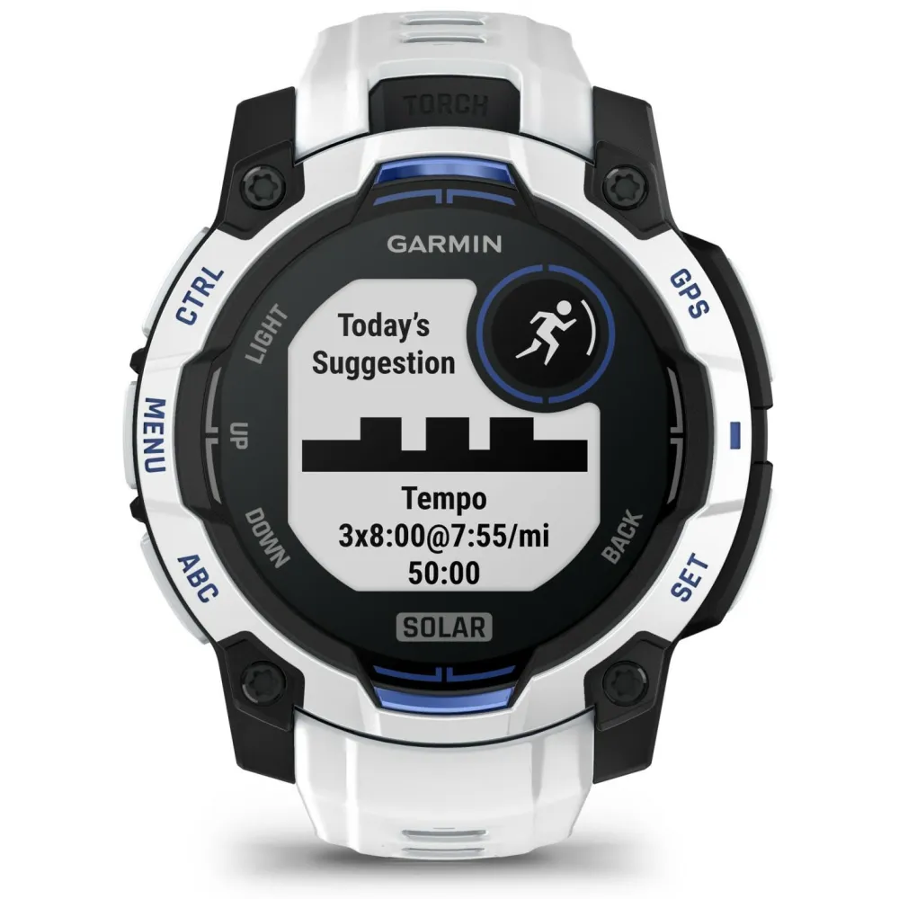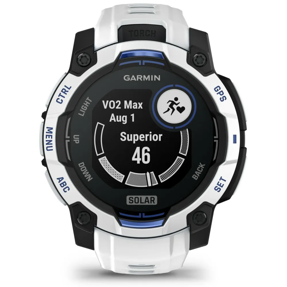 - Instinct 3 – 45 mm, Solar Multisport-Smartwatch mit Silikonarmband; Lade-/Datenkabel; Dokumentation