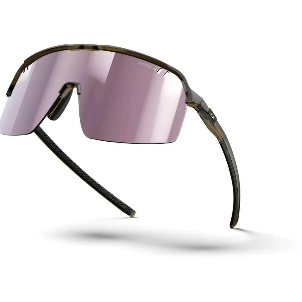 Die Intensity Spectron HD S3 von Julbo ist eine besonders leichte Fahrrad- und Trailrunning-Brille für sportliche Einsätze, bei denen Du Wert auf freie Sicht und sicheren Halt legst. Die großflächige Scheibe bietet ausgeprägte Panoramasicht, während Front Venting die Luftzirkulation unterstützt und Beschlagen reduziert.
