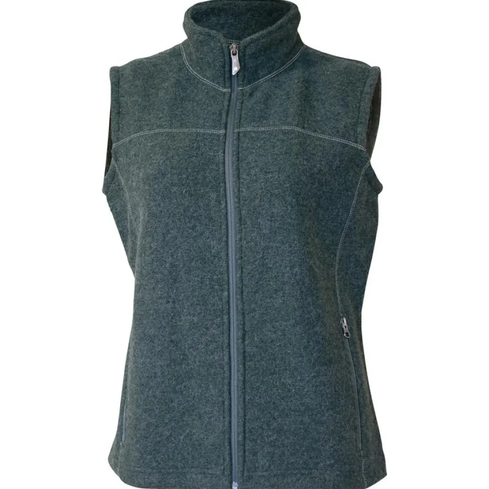 Zudem ist die Weste mit Stehkragen komplett aus Wolle gefertigt, die von Natur aus praktische Eigenschaften mitbringt. Denn Wolle ist atmungsaktiv und wirkt temperaturregulierend. So ist unterwegs für ein ausgeglichenes Trageklima gesorgt. Außerdem ist die Wolle mulesing-frei.
