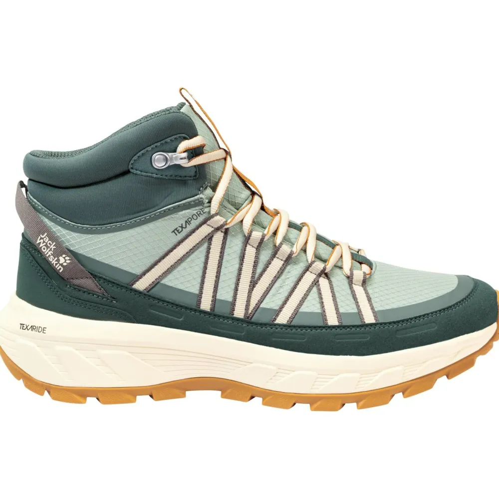 Mit dem Wild Hike Texapore Mid von Jack Wolfskin bist Du bestens vorbereitet für jedes Wetter am Berg. Die eigens entwickelte Texapore-Membran macht den Schuh komplett wasserdicht und winddicht, ohne dass dabei die Atmungsaktivität verloren geht – so bleiben Deine Füße trocken und wohltemperiert, egal ob bei Sonnenschein oder plötzlichem Regen. Das leichte Synthetikmaterial trägt dazu bei, dass sich der Schuh angenehm unbeschwert trägt.