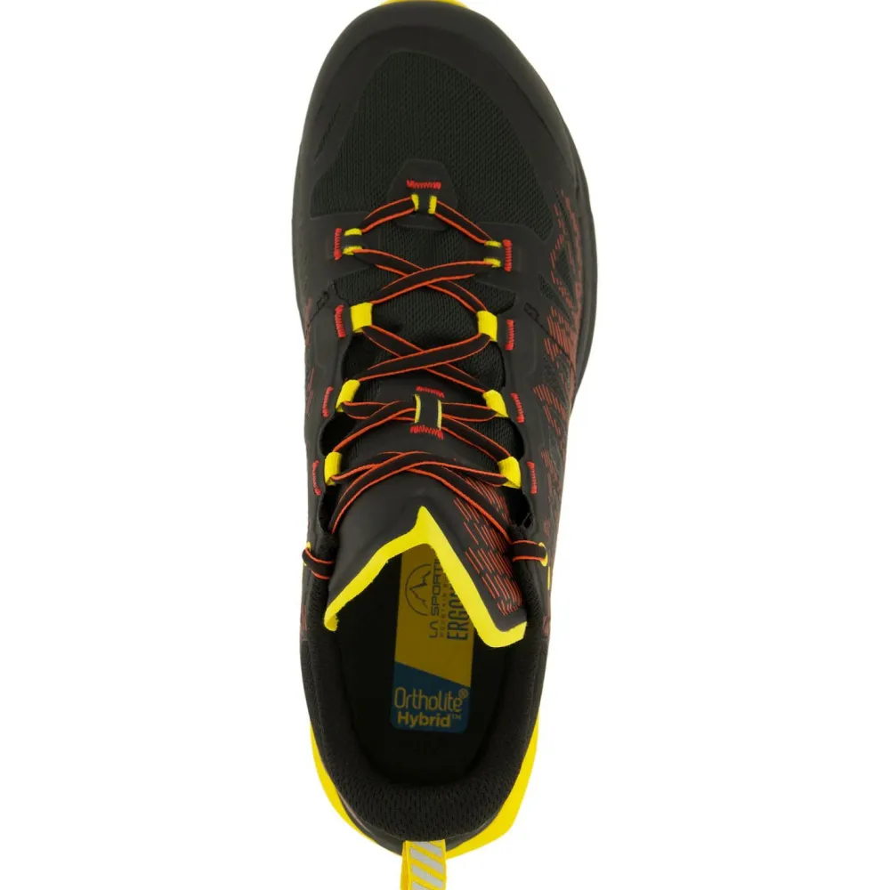 Die Jackal II GTX sind die idealen Trailrunningschuhe für lange Strecken durch gemischtes Gelände. Ob Stein, Geröll, Gras oder Schnee, die Herren-Laufschuhe von La Sportiva bieten auf jedem Untergrund Grip und Stabilität und zeichnen sich durch eine starke, gelenkschonende Dämpfung sowie ein etwas größeres Volumen im Vorfußbereich aus. Sie sind perfekt für erfahrene Läufer, die ihren nächsten Ultramarathon planen oder regelmäßig sehr weite Distanzen zurücklegen. Dank der wasserdichten GORE-TEX-Membran sind die Schuhe auch für die Wintermonate bestens geeignet.