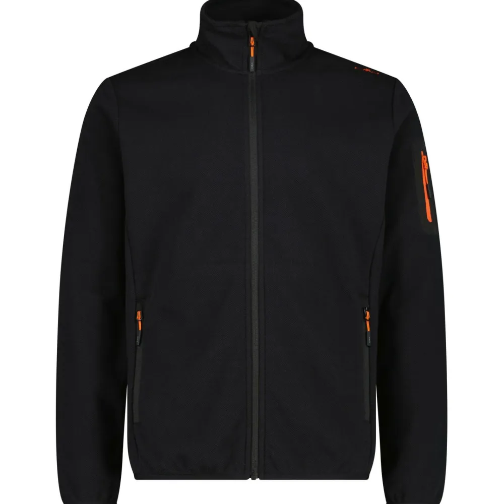 Die Jacquard Knitted Jacket von CMP schmiegt sich angenehm an den Körper an. Sie ist atmungsaktiv und schnelltrocknend. Dank der Verarbeitung von Baumwolle schmiegt sich die Fleecejacke angenehm an Deinen Körper an. Der Stehkragen schützt Deinen Hals und Nacken. Die beiden Seitentaschen mit Reißverschluss bieten ausreichend Stauraum, um wichtige Dinge schnell und sicher zu verstauen. Der Logoprint auf der Schulter unterstreicht den sportlichen und modernen Look. Damit kannst Du die Fleecejacke vielseitig kombinieren. Sie ist ein echter Allrounder für aktive Unternehmungen im Freien.