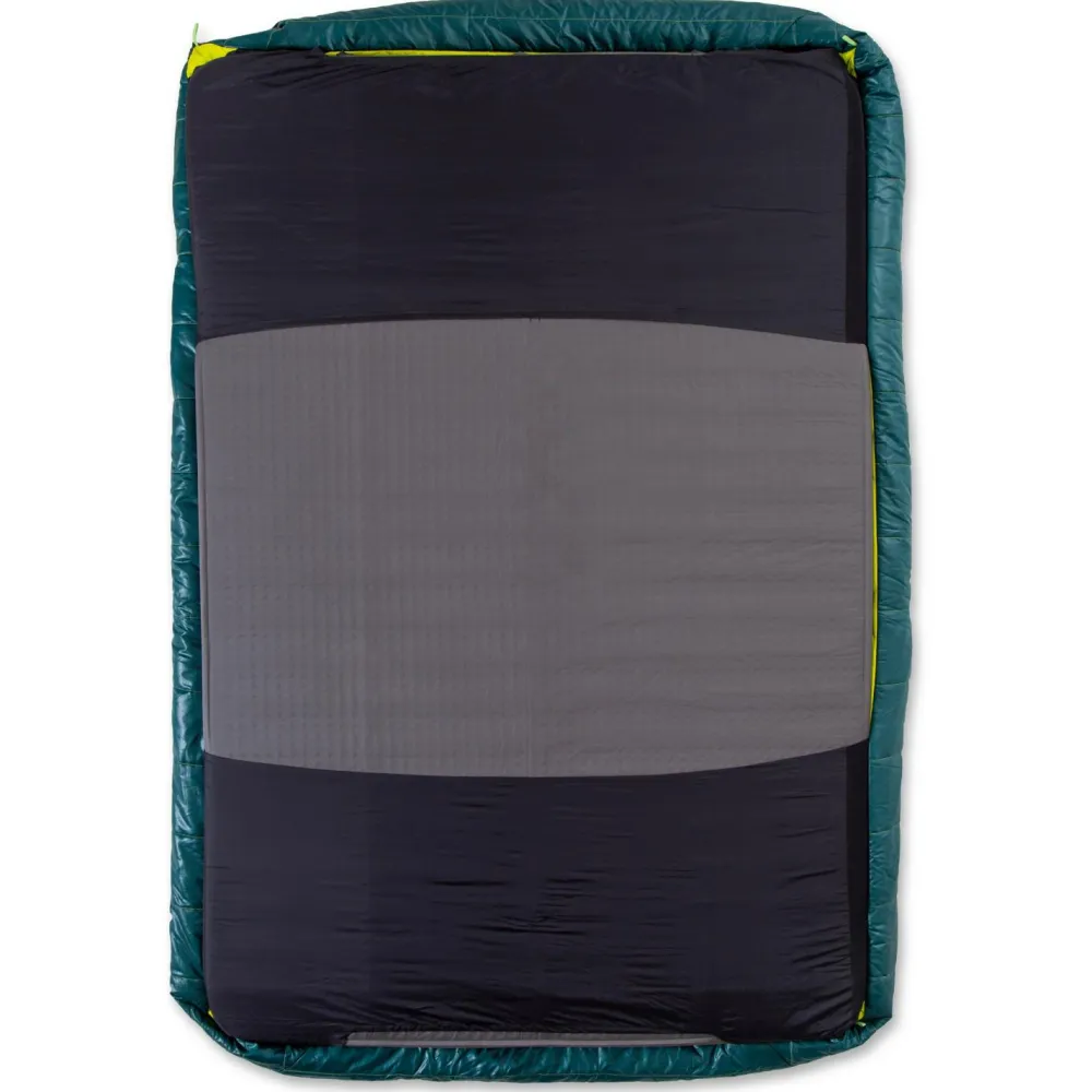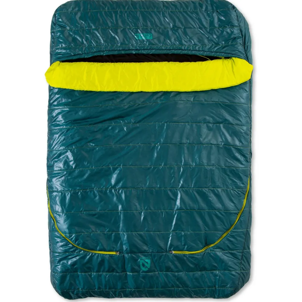 Der Jazz Double 2025 Kunstfaserschlafsack von Nemo bietet höchsten Schlafkomfort beim Camping für zwei Personen. Der Schlafsack ist mit einem integrierten Bettlaken ausgestattet, das ein Schlafgefühl wie zu Hause auch unterwegs möglich macht. An den Seiten sind jeweils 2-Wege-Reißverschlüsse angebracht. Manuelle Luftzufuhr und das seitliche Verlassen des Schlafsacks sind somit kein Problem mehr.
