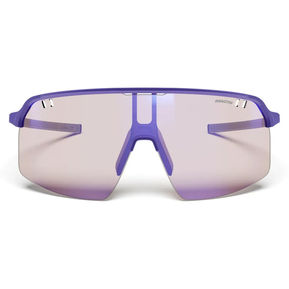 Die Intensity Reactiv HC S1–3 von Julbo ist eine besonders leichte Fahrrad- und Trailrunning-Brille für sportliche Einsätze, bei denen Du Wert auf freie Sicht und sicheren Halt legst. Die großflächige Scheibe bietet ausgeprägte Panoramasicht, während Front Venting die Luftzirkulation unterstützt und Beschlagen reduziert.