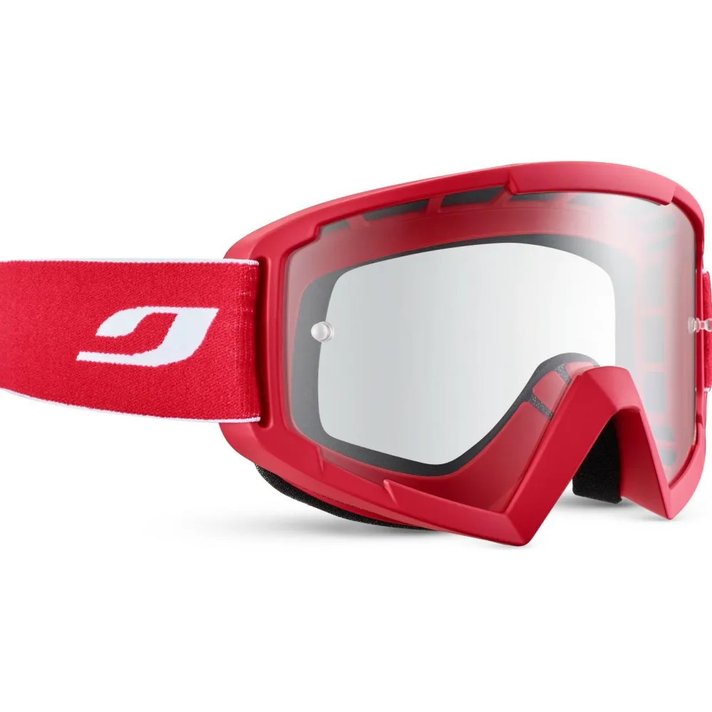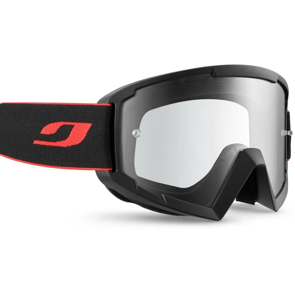Die Session MTB Spectron S0 von Julbo bietet beim Downhill und Enduro besten für Deine Augen. Diese Goggle liegt rundum gut um Gesicht an und lässt sich durch das lange Band problemlos auch mit einem voluminösen Integralhelm tragen. Durch die große Scheibe wird dabei Dein Sichtfeld nicht beschränkt und auch im peripheren Bereich bleibt die Sicht verzerrungsfrei. Darüber hinaus schützt Dich die Brille zuverlässig vor Spritzwasser, Staub und Fahrtwind. In dieser Variante ist die Scheibe nicht getönt und kommt somit vor allem an Tagen mit starker Bewölkung zum Einsatz.