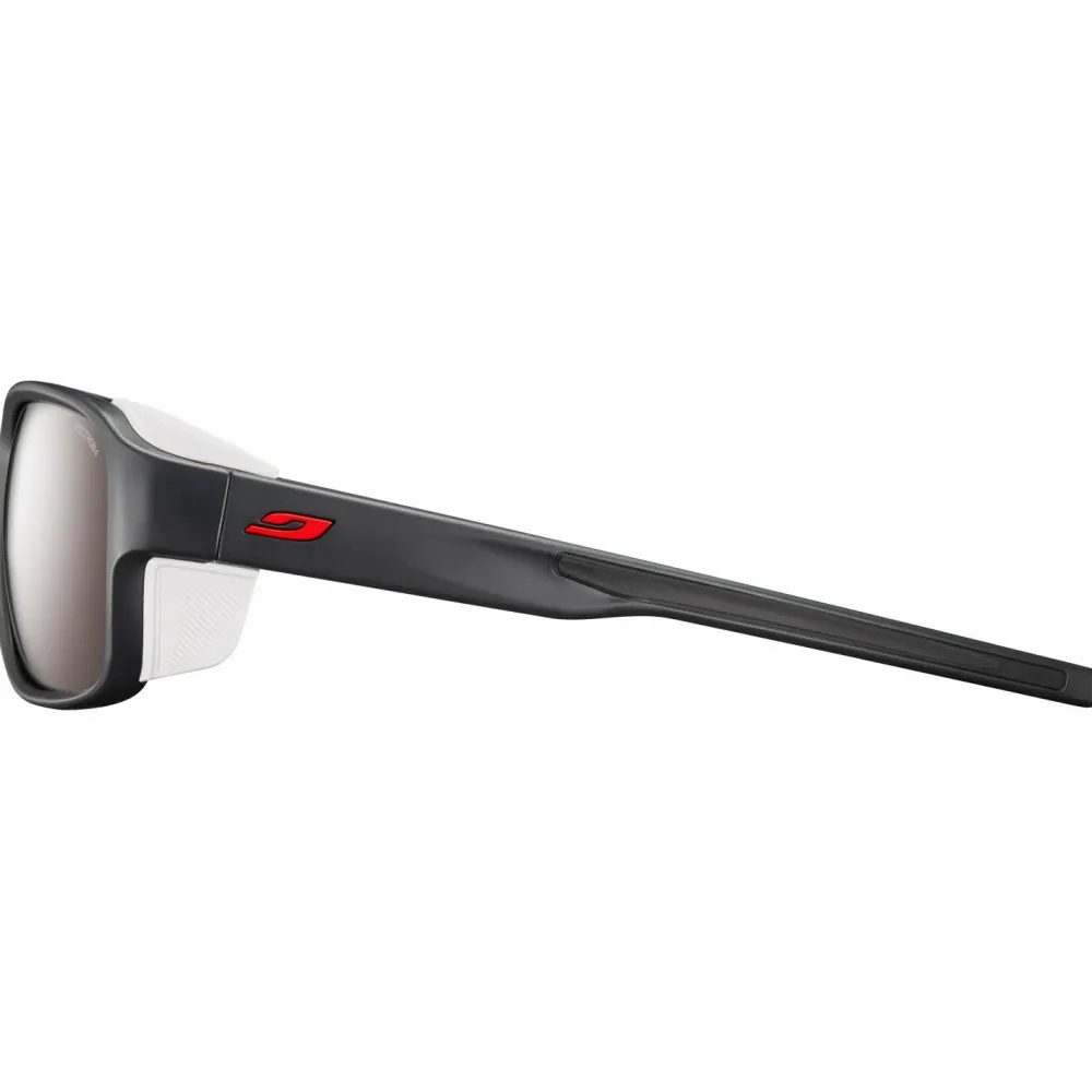Ihr umschließendes, durchdachtes Design mit abnehmbaren Seitenteilen bietet in Höhenlagen zuverlässigen Schutz beim weiten Blick zum Horizont. Die verspiegelten Spectron 4 Polycarbonat Gläser überzeugen durch ein geringes Gewicht sowie gute Stoßfestigkeit und fallen in die Schutzklasse 4. So eignet sich die Monterosa 2 besonders für sonnige Tage und grelles Licht wie auf dem Gletscher.