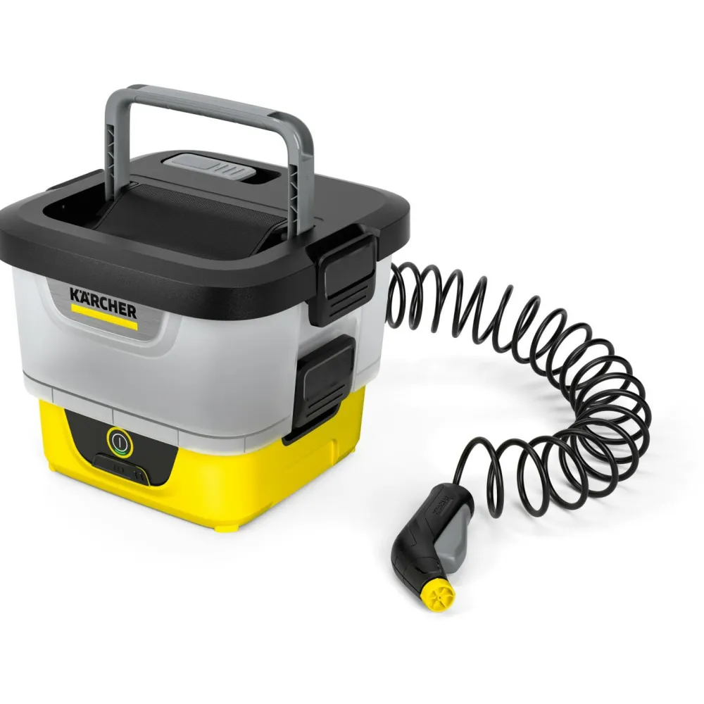 Kompakt und mobil: Der OC 4 ist der Kärcher Akku-Druckreiniger für alle, die eine Reinigungslösung für unterwegs benötigen. Dank integriertem Lithium-Ionen-Akku und großem, 8 Liter fassendem Wassertank kann unabhängig von Strom- oder Wasseranschlüssen gereinigt werden. Die Kärcher Düsentechnologie sorgt für eine schonende und zugleich effektive Reinigung. Der 2,8 Meter lange Spiralschlauch ermöglicht flexibles Arbeiten mit einem großen Bewegungsradius. Dank Sprühpistole mit Einrastfunktion wird komfortabel ohne Kraftaufwand gereinigt.