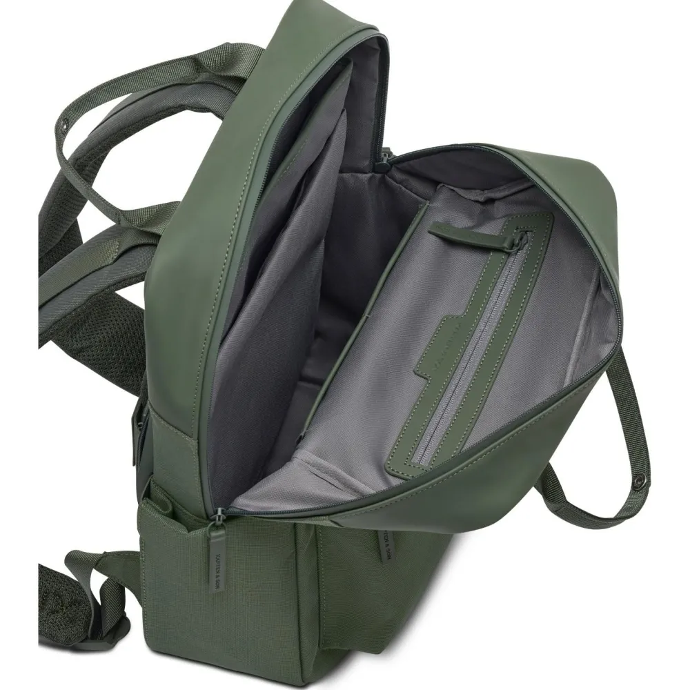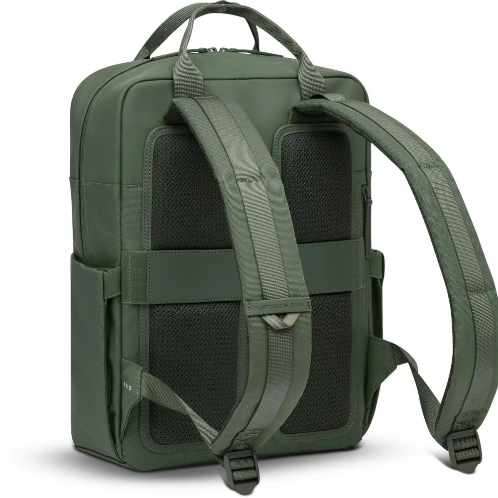 Mit dem Bergen Pro 12 von Kapten & Son startest Du entspannt in den Tag. Das geräumige Hauptfach fasst etwa 12 Liter und bietet zusammen mit zwei Innenfächern, einem separaten Rückfach und einer cleveren RV-Fronttasche Platz für Laptop, Unterlagen und Alltagsgegenstände. Das gepolsterte Laptopfach schützt Deinen Rechner unterwegs, während die Seitenfächer Deine Wasserflasche oder kleine Accessoires aufnehmen – so bleibt alles ordentlich und schnell erreichbar.