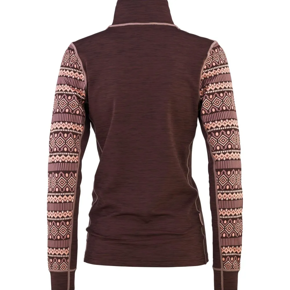 Der Baselayer Women’s Lune Halfzip von Kari Traa ist eine durchdachte Kombination aus recyceltem Polyester und Elasthan. Das Material ist angenehm leicht, liegt weich auf der Haut und bietet durch den Stretch-Anteil eine gute Bewegungsfreiheit. Gerade bei Outdooraktivitäten wie Winterwandern, Langlaufen oder Skifahren ist das ein echter Pluspunkt. Der Stoff ist atmungsaktiv, was bedeutet, dass Du auch bei schweißtreibenden Touren ein angenehmes Körperklima behältst. Besonders praktisch: Der halblange Reißverschluss am Kragen sorgt für zusätzliche Belüftung, wenn es mal etwas wärmer wird.
