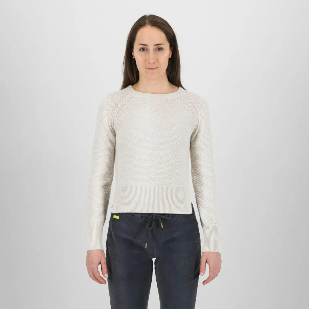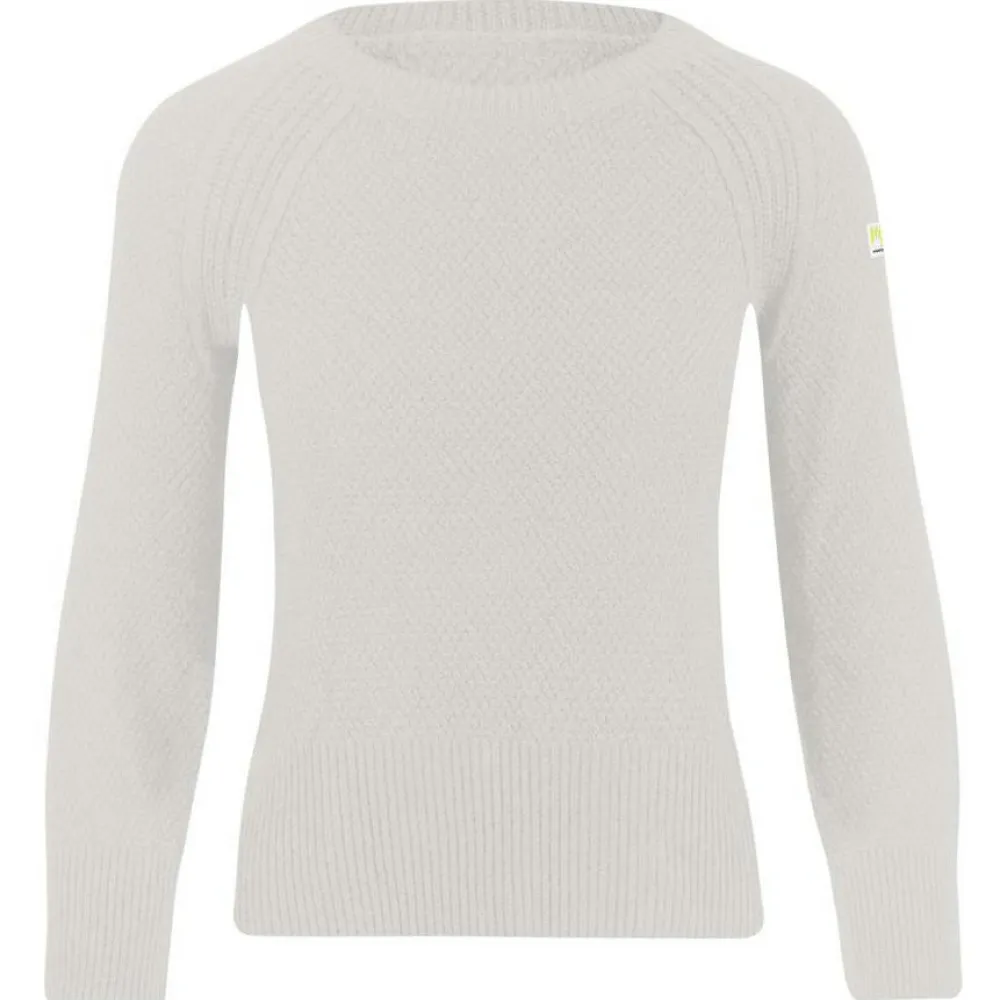Der Women’s Ermellino Crewneck Sweater von Karpos ist ein warmes und komfortables Sweatshirt für den aktiven Winter. Sein äußerst komfortabler und natürlich funktionaler Materialmix aus Wolle und Acryl wird ergänzt durch einen sportlich-ergonomischen Schnitt mit Rundhalsausschnitt. Die Wolle hemmt die Entstehung von Gerüchen und sorgt für Wärme sowie angenehmen Temperaturausgleich bei starker Aktivität. Der Acryl-Anteil macht das Gewebe formstabil und hemmt die Entstehung von Fusseln, ohne den angenehm weichen Griff der Wolle zu beeinträchtigen.
