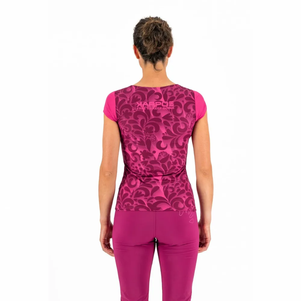 Durch das schicke Design kann das Karpos Women’s Loma Print Jersey nicht nur zum Laufen getragen werden, es macht im Alltag ebenso einiges her. Das Laufshirt ist aus K-Sense hergestellt. Das atmungsaktive Funktionsgewebe sorgt für einen raschen Abtransport von Feuchtigkeit und liegt durch die ergonomische Nahtführung angenehm weich auf der Haut. Eine versteckte Naht im Schulterbereich schützt Dich beim Lauftraining mit dem Women’s Loma Print Jersey von Karpos gegen ein scheuern auf der Haut.