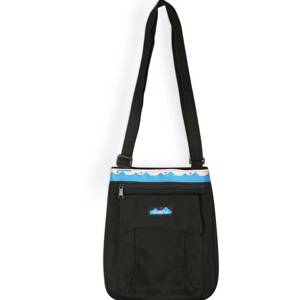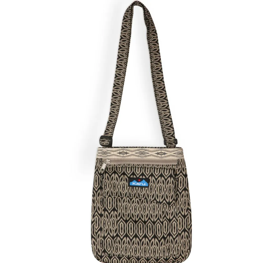 Die Keeper Umhängetasche von KAVU rundet Dein sportlich-lässiges Outfit ab. Mit ihrem Material aus Baumwolle und dem gemusterten Tape macht sie eine gute Figur. Du kannst sie im Alltag, beim Stadtbummel oder beim Reisen dabei haben und Deine wichtigsten Wertgegenstände und Hygieneutensilien in ihr verstauen.