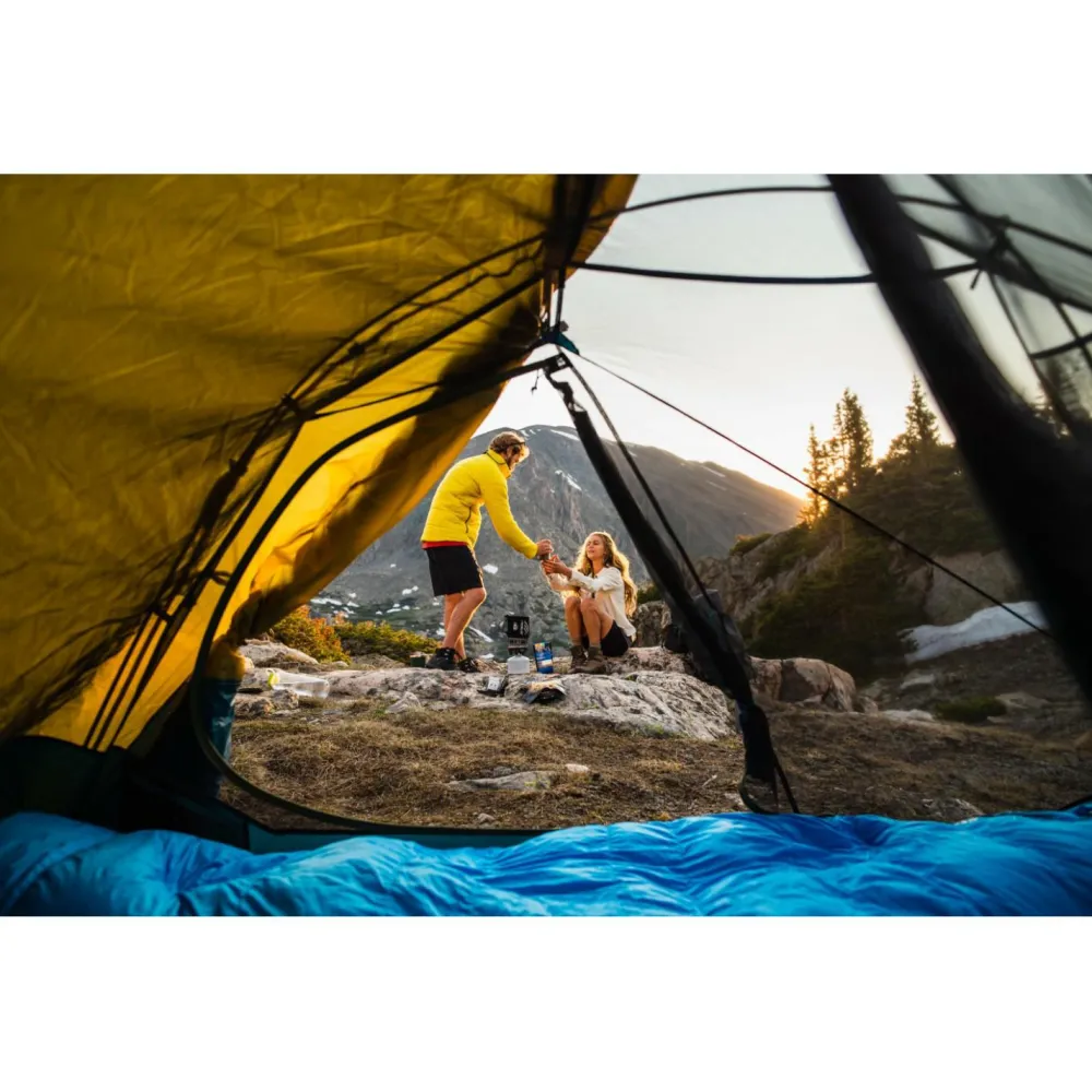 Egal wie weit hinaus es geht, das Far Out 2P von Kelty ist überall mit dabei! Beim Far Out 2P handelt es sich um ein leichtgewichtiges Kuppelzelt, das genügend Platz für zwei Personen bietet und hervorragend für Campingausflüge und Trekkingtouren geeignet ist. Das Außenzelt und der Boden bestehen aus einem umweltfreundlichen Polyestergewebe, das mit einer PFC-freien DWR-Imprägnierung versehen ist und zuverlässigen Schutz vor den Elementen bietet. Die im Lieferumfang enthaltene Zeltunterlage sorgt für zusätzlichen Wetterschutz und verleiht dem Boden ein Plus an Langlebigkeit. Beim Gestänge kommt ein leichtgewichtiges Aluminiumgestänge zum Einsatz, das trotz seiner Leichtigkeit eine hohe Stabilität bietet. Die vormontierten Abspannleinen erleichtern den Aufbau, während die federleichten Heringe das Gewicht zusätzlich reduzieren.
