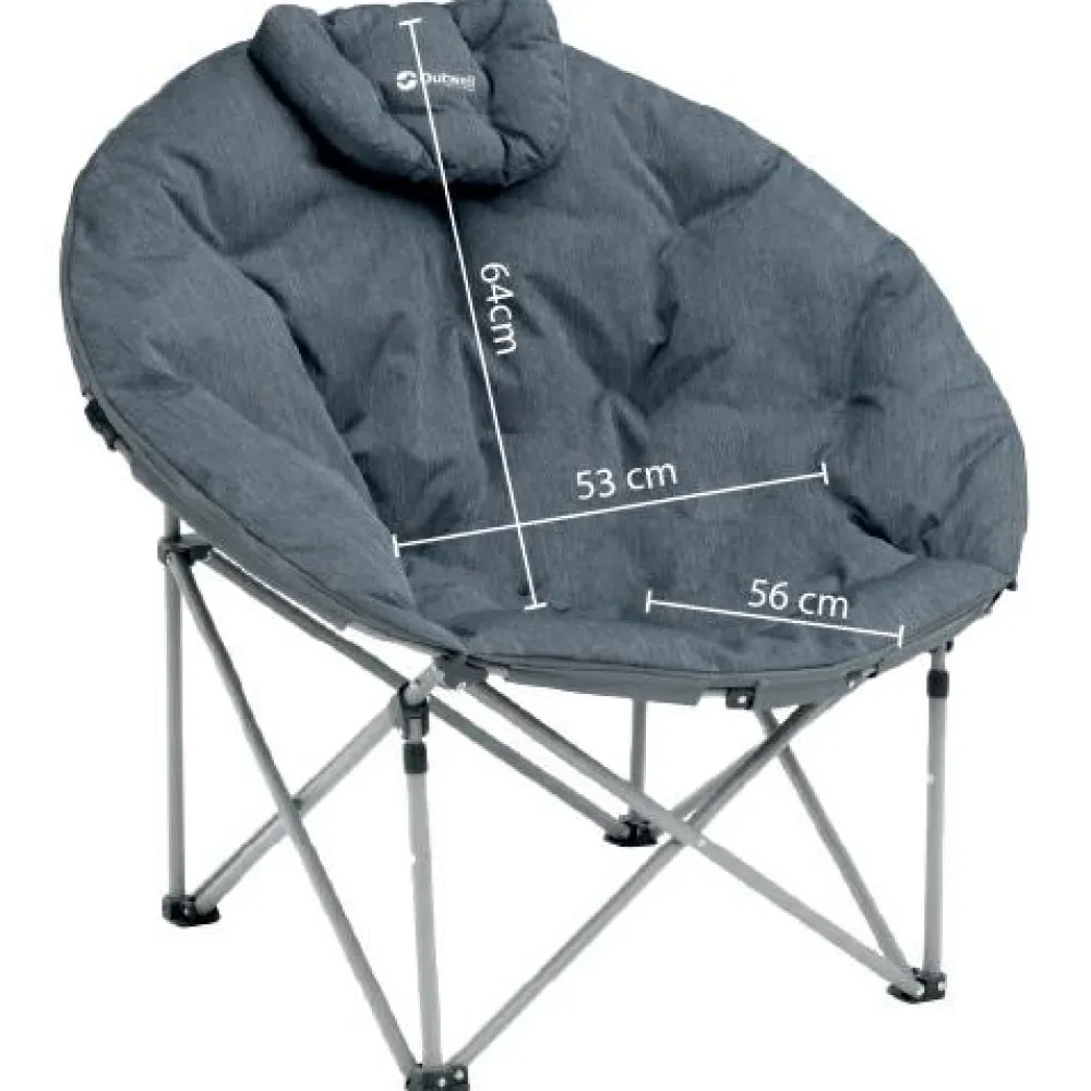 Der Kentucky Lake von Outwell ist ein gepolsterter Campingstuhl mit verstell- und abnehmbarer Kopfstütze. Der Bezug ist mehrlagig aufgebaut und besteht aus Polyestergewebe mit starker Polsterung. Ein pulverbeschichteter Stahlrahmen sorgt für Stabilität. Du kannst den Stuhl schnell auf- und zusammenklappen, er kommt ohne Montage aus und lässt sich mithilfe eines Klettbands kompakt verstauen.