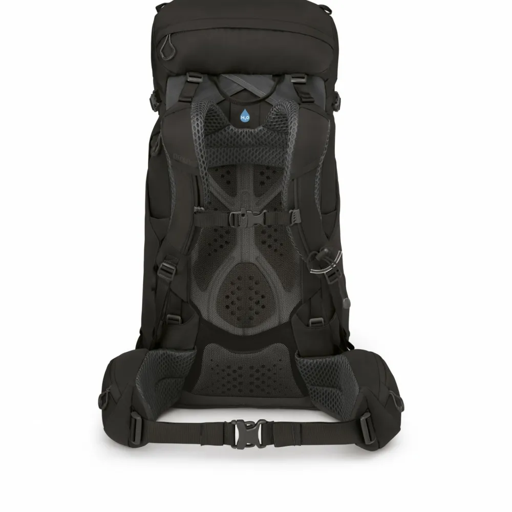Osprey stattet den Toploader mit einer wasserabweisenden DWR-Behandlung und einer integrierten Regenhülle aus. So ist der Rucksackinhalt auch an regnerischen Tagen jederzeit gut geschützt. Der Rucksack verfügt über einen praktischen seitlichen Reißverschluss, so dass der Inhalt auch mit geschlossenem Deckelfach gut erreichbar ist. Ein stabiler Tragegriff, Befestigungsmöglichkeiten für Trekkingstöcke und eine ausgeklügelte Auswahl an Seitentaschen und Kompressionsriemen ergänzen den Kompakten Wanderrucksack für Mehrtagestouren.