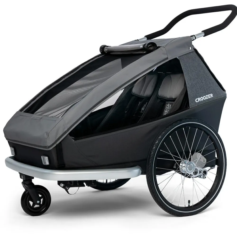 Der Kid Keeke 2 von Croozer ist ein robuster, komfortabler Kinderanhänger mit einem tollen Design. Er bietet Platz für zwei Kinder und kann eine Gesamtlast von bis zu 45 Kilogramm befördern. Er besitzt viele praktische Features von denen die Federung als Erstes heraussticht. Den die AirPad Federung passt sich automatisch dem Gewicht des Anhängers an und sorgt für eine zuverlässige Dämpfung und Federung. So ist eine sanfte und sichere Fahrt für den Nachwuchs garantiert. Damit der Nachwuchs während der Fahrt optimal geschützt ist, ist die Fahrgastzelle besonders robust und mit einem 5-Punkt-Sicherheitsgurt ausgestattet. Zudem sorgt der breite Radstand und der niedrige Schwerpunkt des Anhängers für eine sichere und spurstabile Straßenlage. Um die Räder zu schützen sind robuste Stoßfänger am Anhänger montiert, welche gleichzeitig als praktischer Fixpunkt für das Anschließen mit einem Fahrradschloss dienen.