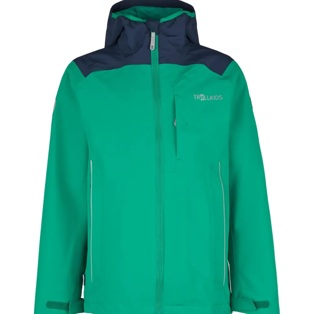 Damit trotzen abenteuerlustige Jungs und Mädchen jedem Regenschauer: Die Kids Bergen Jacket von Trollkids ist eine farbenfrohe Regenjacke für Kinder, die auch bei Wind und Wetter gerne draußen sind. Mit einer Wassersäule von 5.000 mm hält sie auf dem Weg zu Schule und Kindergarten, beim Toben im Garten oder auf Wanderungen angenehm trocken.