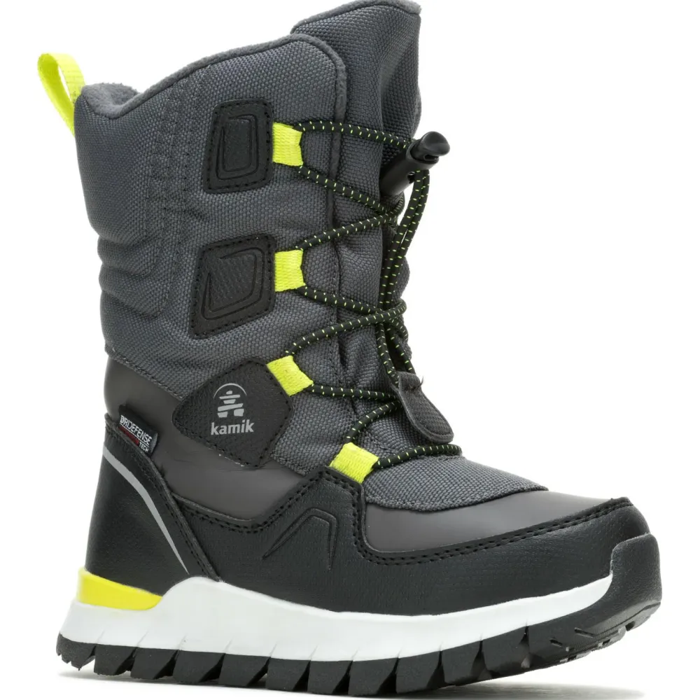 Da es bekanntlich kein schlechtes Wetter, sondern nur die falsche Kleidung gibt, ist es speziell bei den Herausforderungen, vor die uns winterliche Bedingungen stellen wichtig, gerade für Kinder die richtige Ausrüstung parat zu haben. Und da im Winter kalte oder nasse Füße der Spaßkiller Nr. 1 sind, schlägt hier die Stunde des Kid’s Bouncer 2 von Kamik. Das dank DriDefense-Membran wasserdichte Obermaterial (Kunstleder und Nylon) schützt zuverlässig vor Schnee, Matsch und Feuchtigkeit. Und durch die HEAT-MX 145 Isolierung kann der Outdoor-Nachwuchs theoretisch bei Temperaturen von bis zu -40°C draußen rumtoben. Falls es in den Stiefeln dennoch mal zu warm werden sollte, kommt das kuschelig-bequeme, aber auch feuchtigkeitsableitende Fleece-Innenfutter ins Spiel.