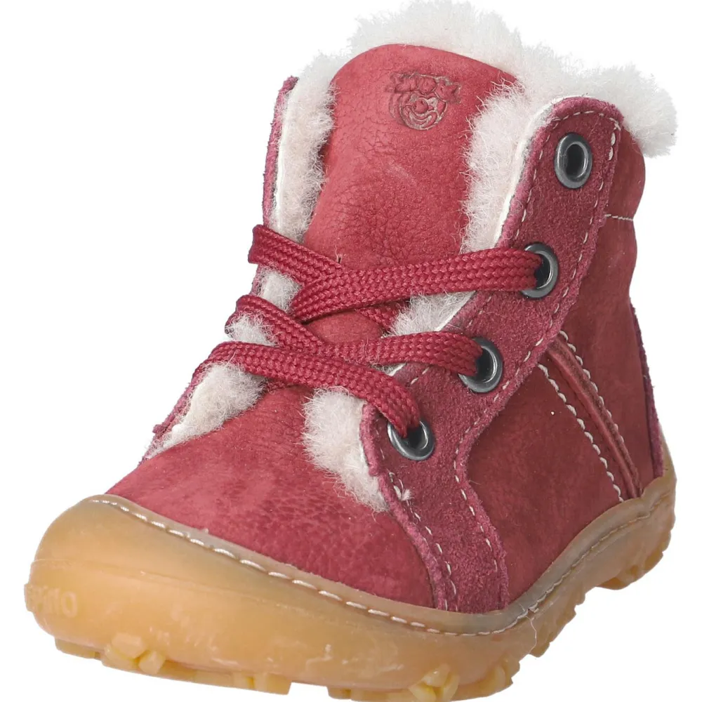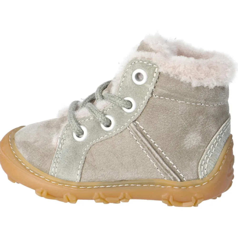 …denn der Kid´s Elia von Pepino by Ricosta kann sowohl mit Socken als auch barfuß getragen werden! Und ist dabei in jedem Fall kuschelig warm. Denn das Innenfutter besteht aus flauschigem Lammfell, und besitzt on top noch eine warme Decksohle. Damit sind die Kleinen -ob mit oder ohne Socken- auch an kalten Tagen gut gerüstet. Das Obermaterial der Schühchen besteht aus ökologisch gegerbtem, umweltfreundlichem Terracare-Leder aus Deutschland, und die Schnürung sorgt für guten Halt und Stabilität. Stichwort Stabilität: in der Hinsicht muss auch die Sohle aus Naturkautschuk erwähnt werden, die gleich in mehrerlei Hinsicht punktet: sie ist weich, flexibel, und leicht profiliert. Dadurch bietet sie einerseits guten Halt, weil sie sich dem Untergrund anpasst und die leichte Profilierung noch etwas zusätzlichen Grip generiert. Durch die Flexibilität kann sich die Sohle den natürlichen Laufbewegungen anpassen und diese unterstützen. Außerdem ist die Sohle im vorderen Bereich bis über die Zehen hochgezogen, so dass diese bestens geschützt sind, auch wenn täglich Rennen mit dem Rutschauto gefahren werden. Klasse!