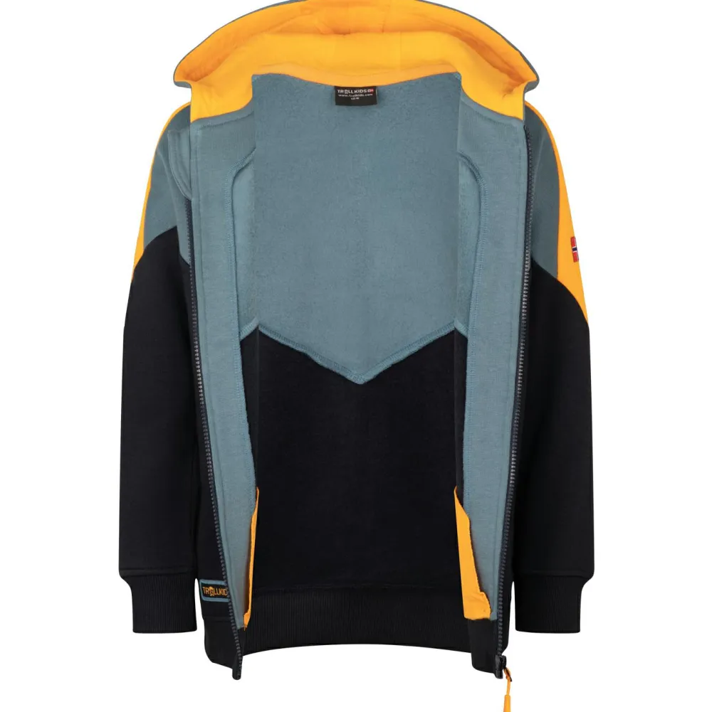 Schick, sportlich und vielseitig, das ist die Kid’s Flekkefjord Jacket von Trollkids. Diese Sweatjacke kann entweder beim Sport oder in der Freizeit getragen werden und sieht durch ihr modernes Design auch noch gut dabei aus. Das Material ist sehr angenehm zu tragen, zusätzlich wirkt der gerade Schnitt nicht einengend. Praktisch: In zwei Taschen lassen sich allerlei Kleinteile verstauen und auch die Hände wärmen.