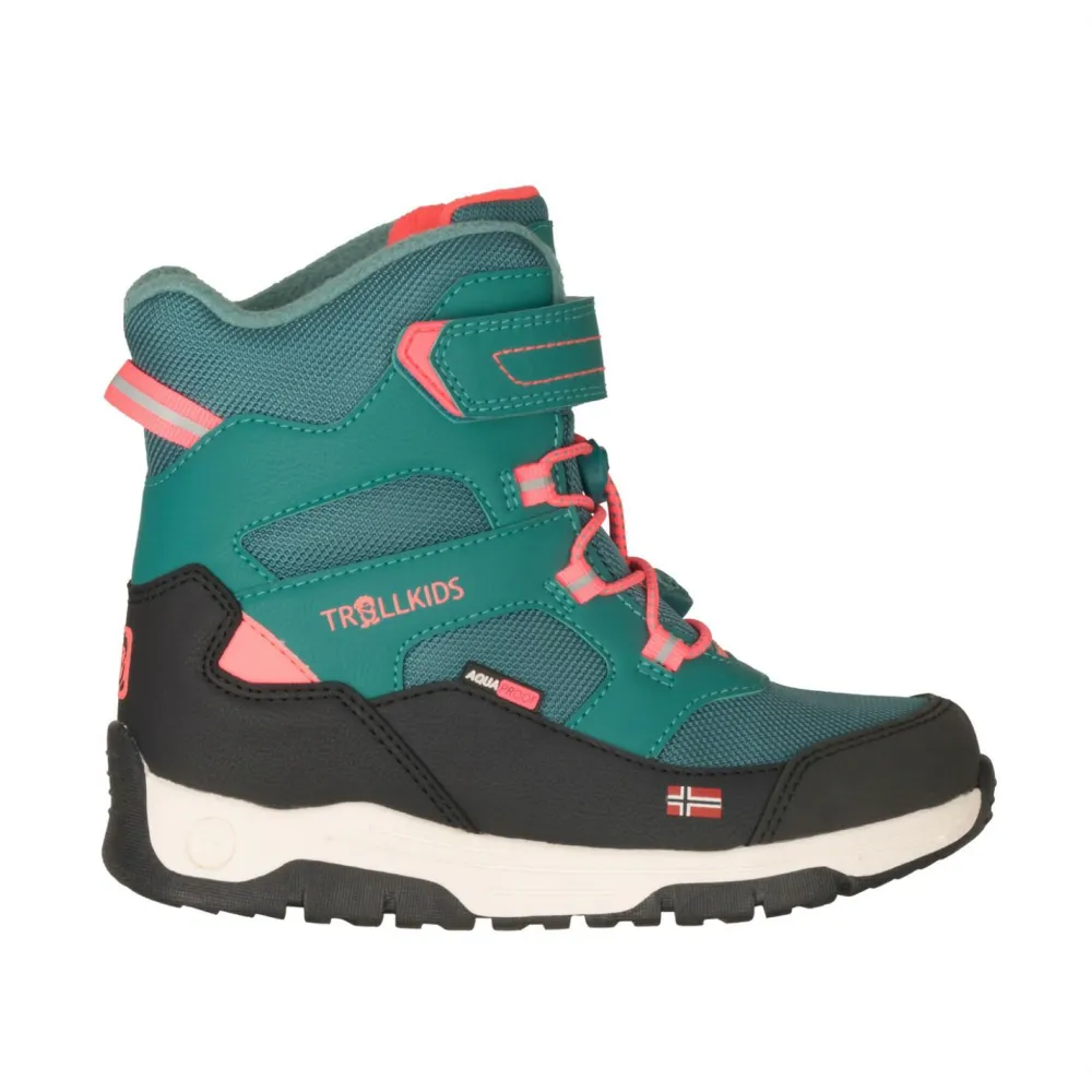 Die Kid’s Lofoten Winter Boots Pro Winterstiefel von Trollkids schmiegen sich warm und bequem an die kleinen Füße Deines Kindes. Sowohl das Innenmaterial, als auch die herausnehmbare Innensohle sind mit weichem Fleece bezogen.Das Innenmaterial trocknet schnell wieder ab, wenn es einmal nass geworden ist, und ist am nächsten Tag direkt wieder einsatzfähig. Die Kid’sLofoten Winter Boots Pro haben somit das Potenzial, zu den absoluten Lieblings-Winterstiefeln zu werden!
