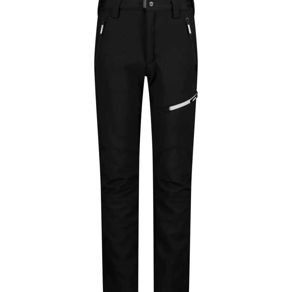 Mit der Kid’s Long Softshell Pant von CMP sind die Kids bestens für bewegungsintensive Winteraktivitäten gerüstet! Bei dieser sportlichen Softshellhose kommt ein geschmeidiges Polyestergewebe mit Stretchanteil zum Einsatz, das eine hervorragende Bewegungsfreiheit bietet und dank PFC-freier DWR-Imprägnierung über wasserabweisende Eigenschaften verfügt. Die atmungsaktive ClimaProtect Membran von CMP sorgt für zusätzlichen Wetterschutz und verleiht der Hose ein angenehmes Trageklima. Die Softshellhose besitzt zudem zwei Fronttaschen sowie eine Oberschenkeltasche mit Reißverschluss, die sicheren Stauraum für wichtigen Kleinkram bieten. Mit der Kid’s Long Softshell Pant von CMP kann der Winter kommen!