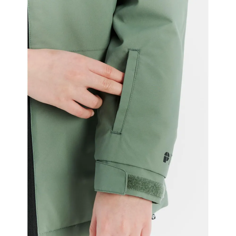 Dank der Kapuze ist der empfindliche Kopf vor Wind und Wetter geschützt. Sie schmiegt sich angenehm an den Kopf an und hält ihn warm. Die beiden Seitentaschen bieten Platz für wichtige Kleinigkeiten, aber auch um unterwegs die Hände zu wärmen. Hier können Kinder zum Beispiel auch ihre Handschuhe verstauen, wenn sie nicht benötigt werden. Dank der Liftpasstasche können Kinder und Jugendliche den Liftpass schnell finden. Der Schneefang hält Schnee außerhalb der Skijacke. Mit dem schlichten und dennoch sportlichen Look kann sie vielseitig kombiniert werden. Eine Skijacke, mit der Kinder und Jugendliche im Schnee Freude haben – die Kid’s PRTFlynto Snowjacket von Protest.