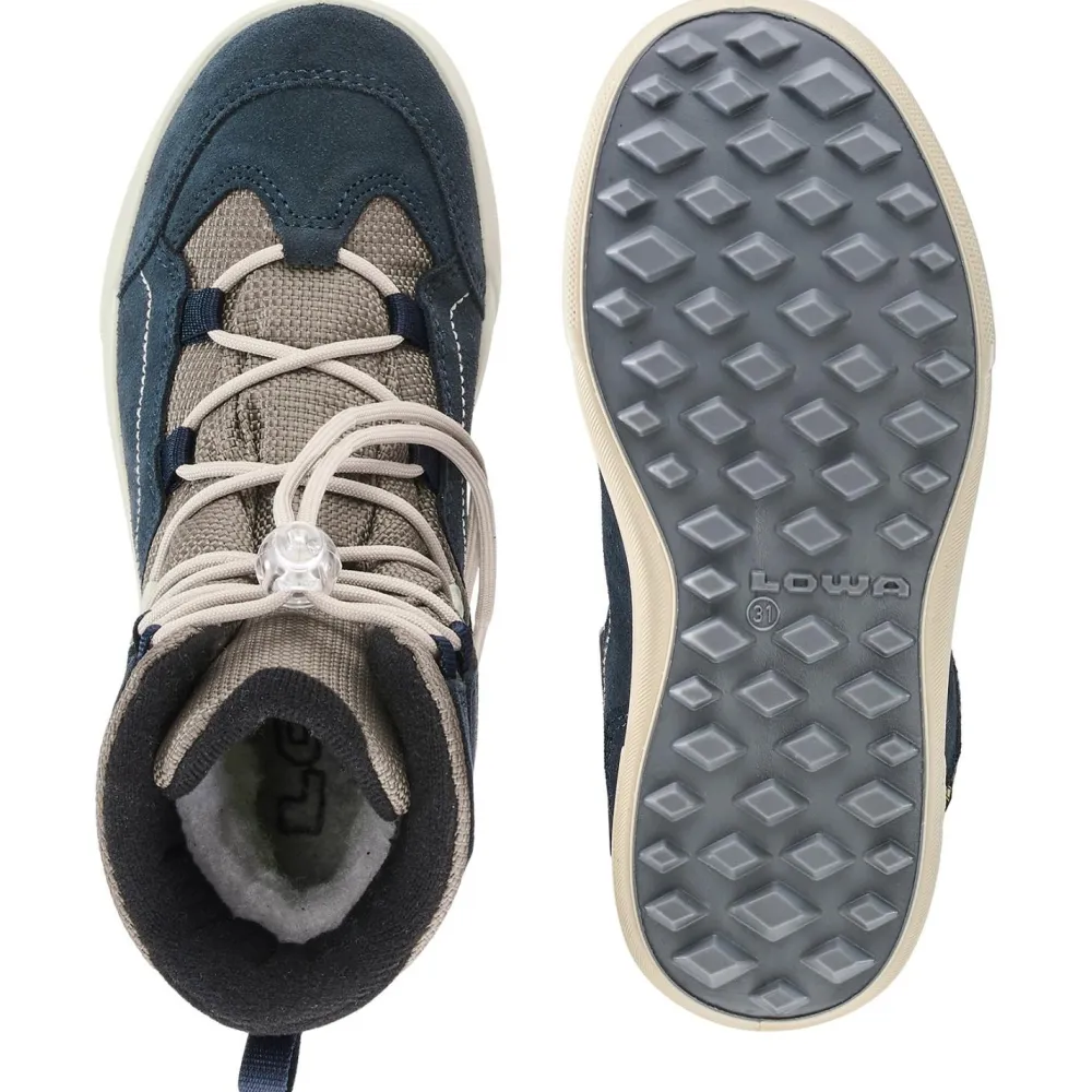 Die flexible LOWA Sneaker Kids Winter-Sohle ist speziell für winterliche Bedingungen gemacht und sorgt für sicheren Tritt auf nassem Untergrund, Schnee und glatten Wegen. Für eine erhöhte Abriebfestigkeit sind Ferse und Zehen mit stabilen Kappen verstärkt.