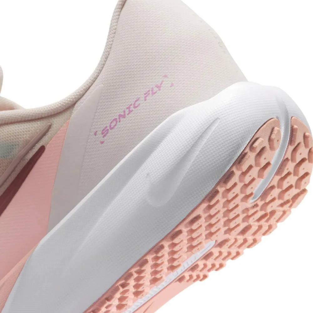 Die Kid’s Sonic Fly von Nike verleihen Kindern Flügel. Sie sind atmungsaktiv und schnelltrocknend. Die Runningschuhe sind speziell für Kinder designt, die beim Laufen alles geben wollen. Der federnde Schaumstoff in der Mittelsohle verwandelt jeden Schritt in pure Energie, während das leichte, atmungsaktive Mesh für kühlen Komfort sorgt. Verstärkte Zehen- und Seitenbereiche machen die Sneaker robust genug, um wilde Spiele im Park oder schnelle Sprints auf dem Schulhof mitzumachen. Seitliche Bänder und klassische Schnürsenkel geben sicheren Halt, damit jeder Schritt stabil bleibt. Die Gummi-Außensohle mit Waffelmuster sorgt für Traktion, damit Kinder überall mit voller Geschwindigkeit durchstarten können.
