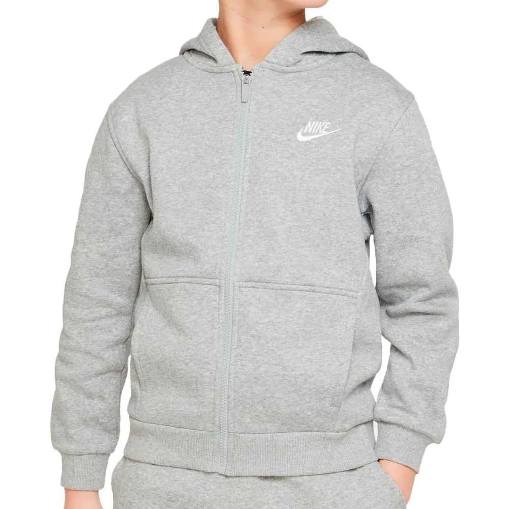 Die Kapuzenjacke Kid’s Sportswear Club Fleece Full Zip von Nike sorgt für kuscheligen Tragekomfort. Glatt an der Außenseite, angeraut an der Innenseite, trägt sie sich besonders angenehm auf der Haut. Sie ist ein unkompliziertes Kleidungsstück, wenn Du etwas mehr Wärme möchtest. Hol Dir dieses vielseitige Kleidungsstück, wenn ein Pullover einfach nicht reicht.