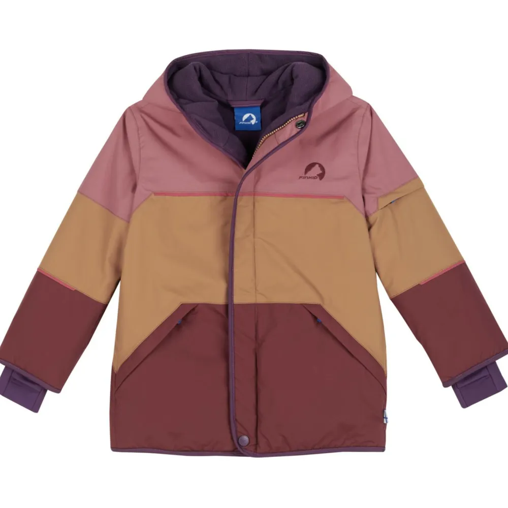 Durchdachte Extras machen den Unterschied: Ein leichtgängiger Frontreißverschluss mit Windschutz hält kalte Zugluft ab, während zwei geräumige Reißverschlusstaschen und eine spezielle Liftpasstasche alles Wichtige griffbereit halten. Für zusätzlichen Komfort sorgen elastische Bündchen innen sowie Daumenschlaufen – so bleibt alles an Ort und Stelle. Reflektierende Elemente erhöhen die Sichtbarkeit bei Dunkelheit, und die Kapuze schützt zuverlässig vor Windböen – typisch Finkid: praktisch, kindgerecht und inspiriert von skandinavischer Natur.