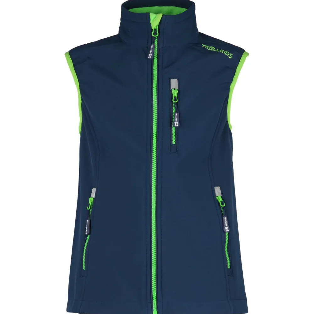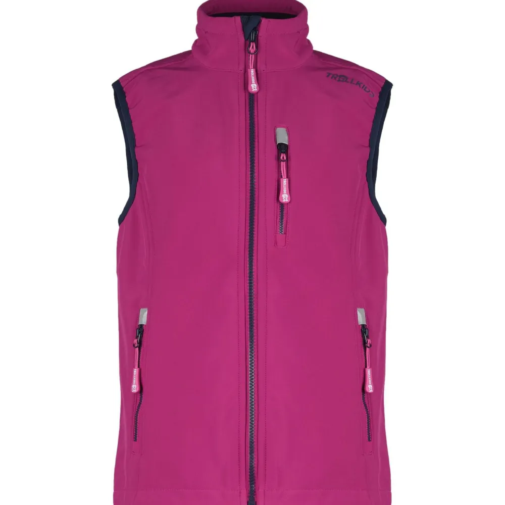 Die Kid’s Trollfjord Vest von Trollkids ist eine vielseitig einsetzbare Softshellweste mit weichem Fleece-Futter, die sich zu vielen Gelegenheiten tragen lässt.