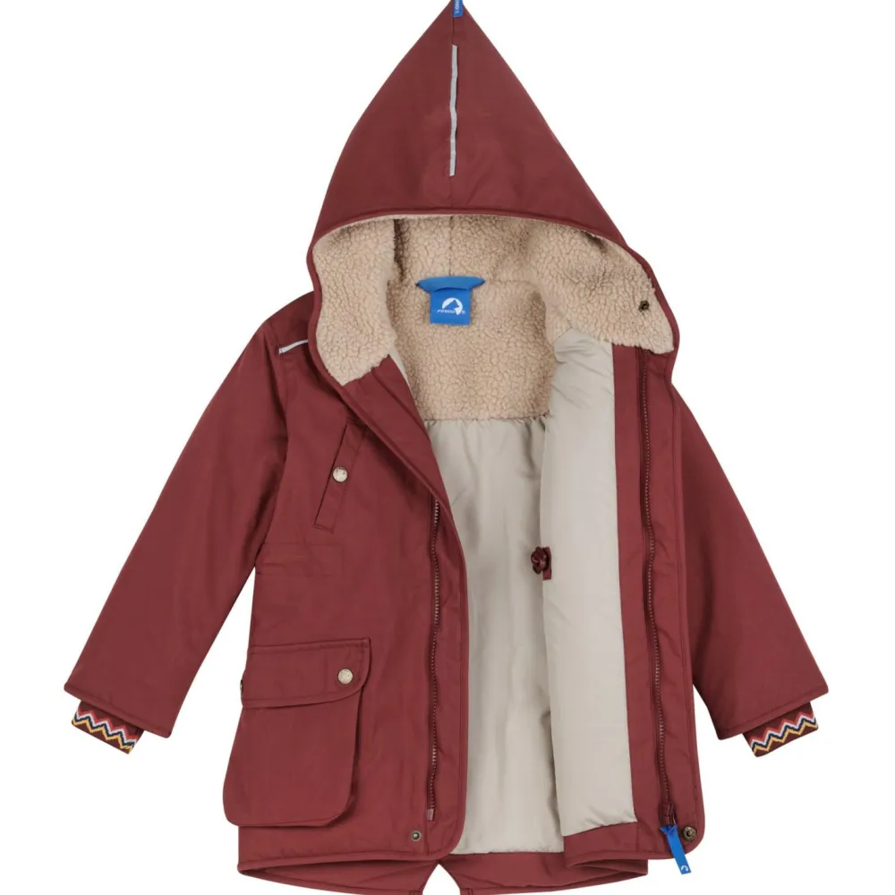 Dank des Mixes aus Baumwolle und Kunstfaser ist dieser Parka nicht nur angenehm zu tragen, sondern auch besonders widerstandsfähig gegen Beanspruchung beim Toben oder Spielen im Freien. Die hochwertige Kunstfaserfüllung isoliert effizient, ohne aufzutragen – so bleibt alles unkompliziert sauber und bereit für das nächste Abenteuer.