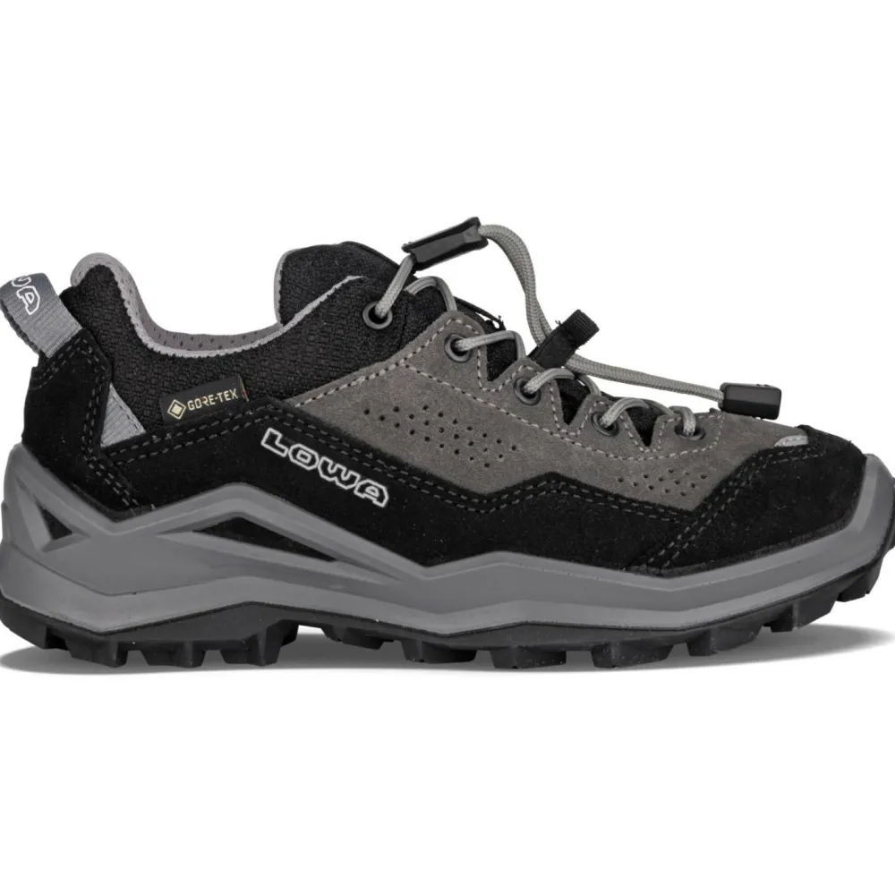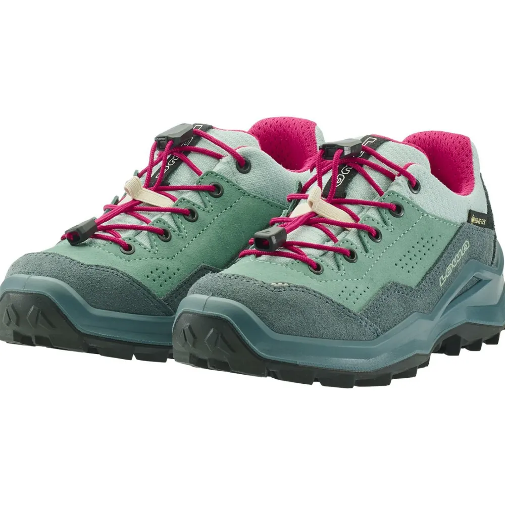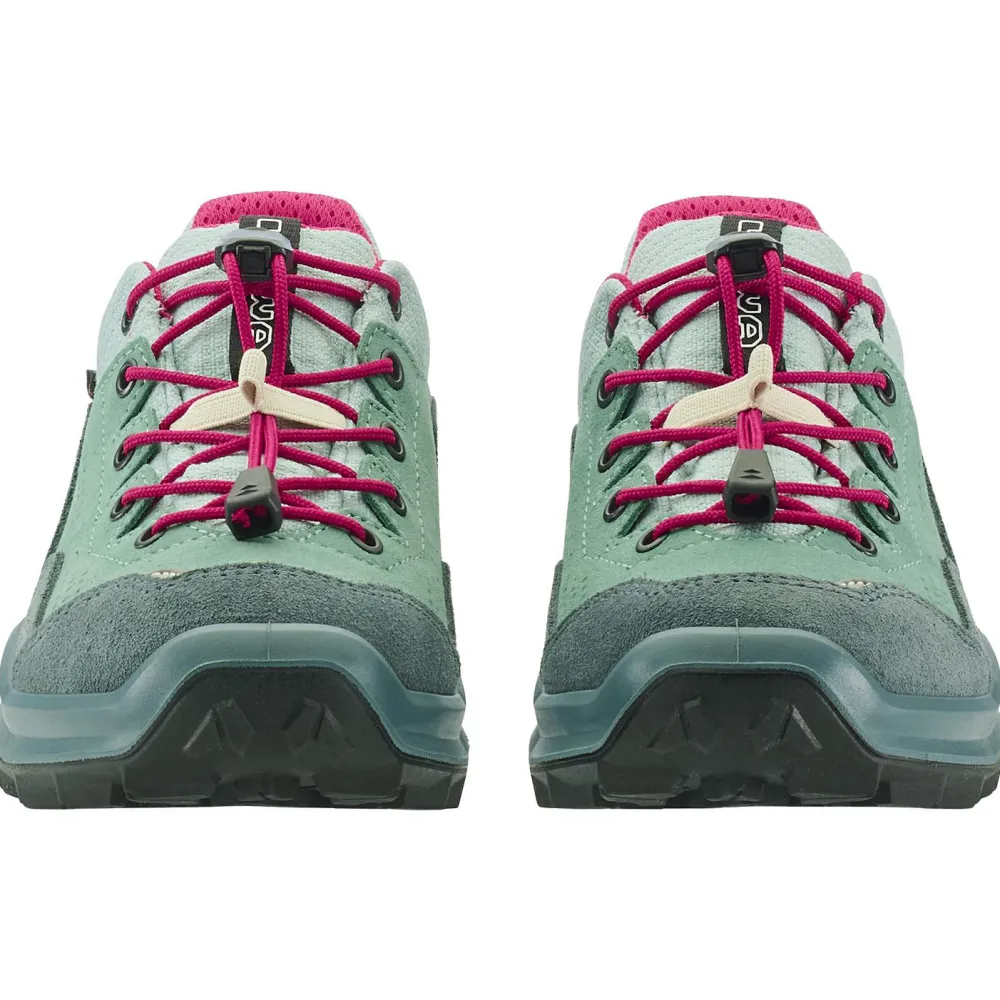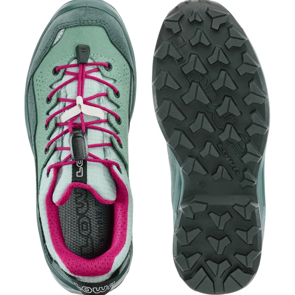 Dier praktische Schnellschnürung und die Anziehschlaufe erleichtern das An- und Ausziehen deutlich. Die griffige LOWA-Gummilaufsohle bietet optimalen Grip für schnelle und wendige Bewegungen auf jedem Terrain. Perfekt für aktive Kids!