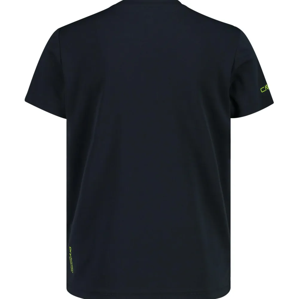 Das Boy’s T-Shirt Piquet von CMP fällt durch den fröhlichen Frontprint sofort ins Auge. Es kann vielseitig kombiniert werden und ergänzt jeden sportlichen Look. Der Rundhalsausschnitt schmiegt sich angenehm an den Hals an, ohne einzuengen. Dank der Materialzusammensetzung ist das T-Shirt atmungsaktiv und schnelltrocknend. Durch die antimikrobielle Materialbehandlung ist es geruchshemmend und kann daher auch bei aktiven Ausflügen getragen werden.